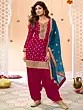 Pink Velvet Salwar Kameez Suit With Heavy Embroidery And Chanderi Dupatta For Indian Parties