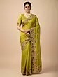 Soft Fendy Chiffon Saree With Ornate Embroidery Cutwork Aarco Border And Mono Banglori Blouse For Wedding