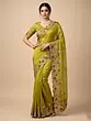 Yellow Moss Chiffon Saree With Sequins Lace Border And Mono Banglori Silk Blouse For Wedding Party Reception Wear