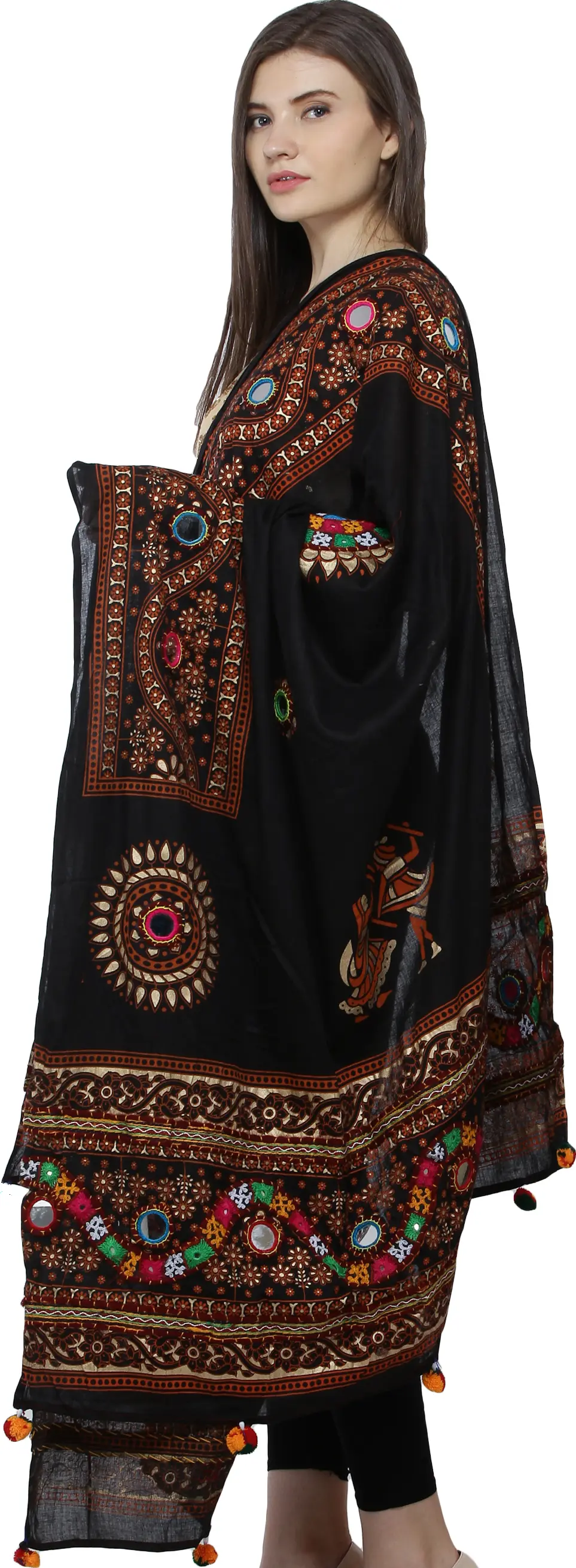 Shawl from Kutch with Embroidered Chakra and Mirrors