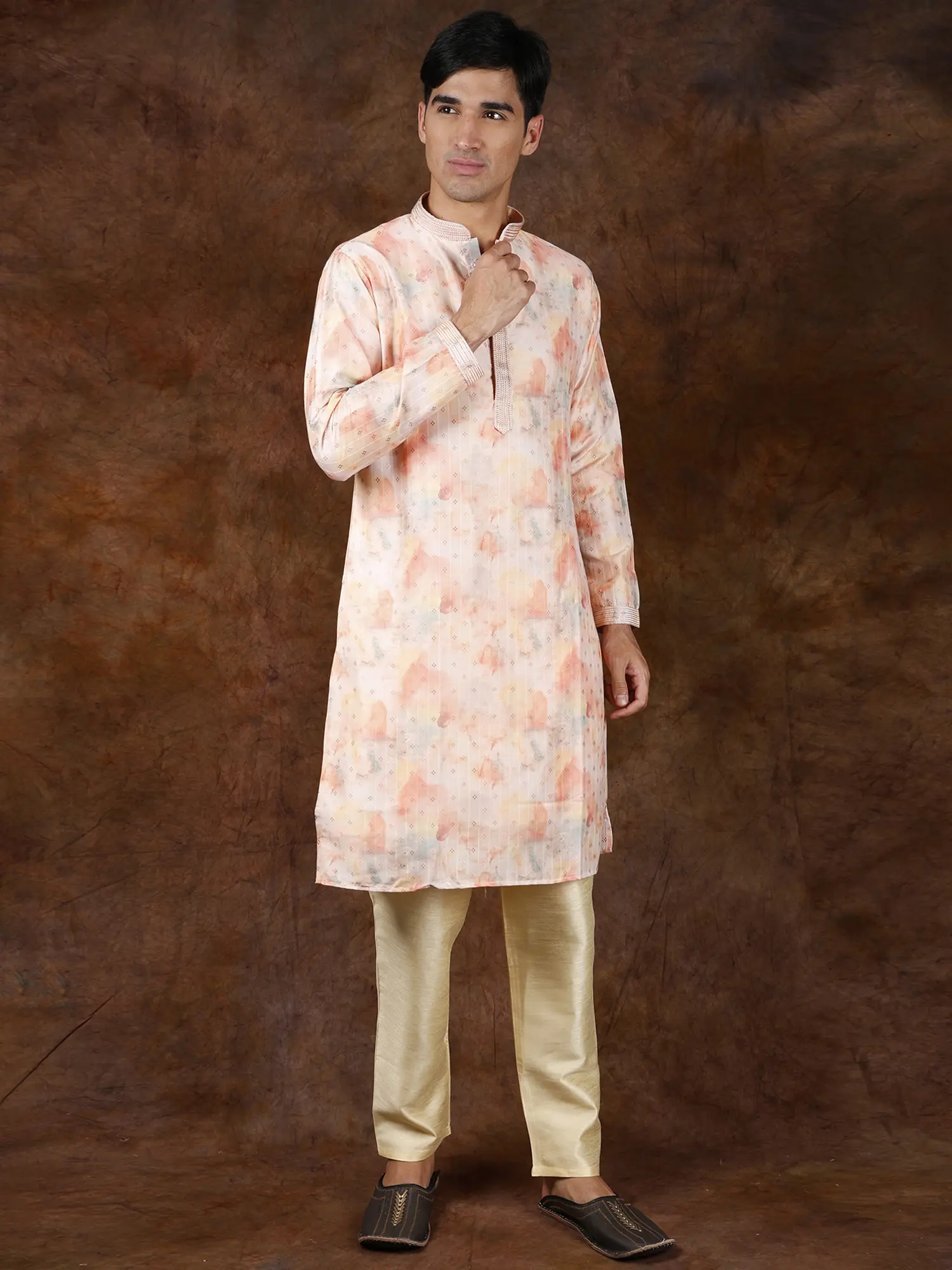 Novelle-Peach Kalamkari Prayer Stole with Printed Lord Jagannath Ji Face