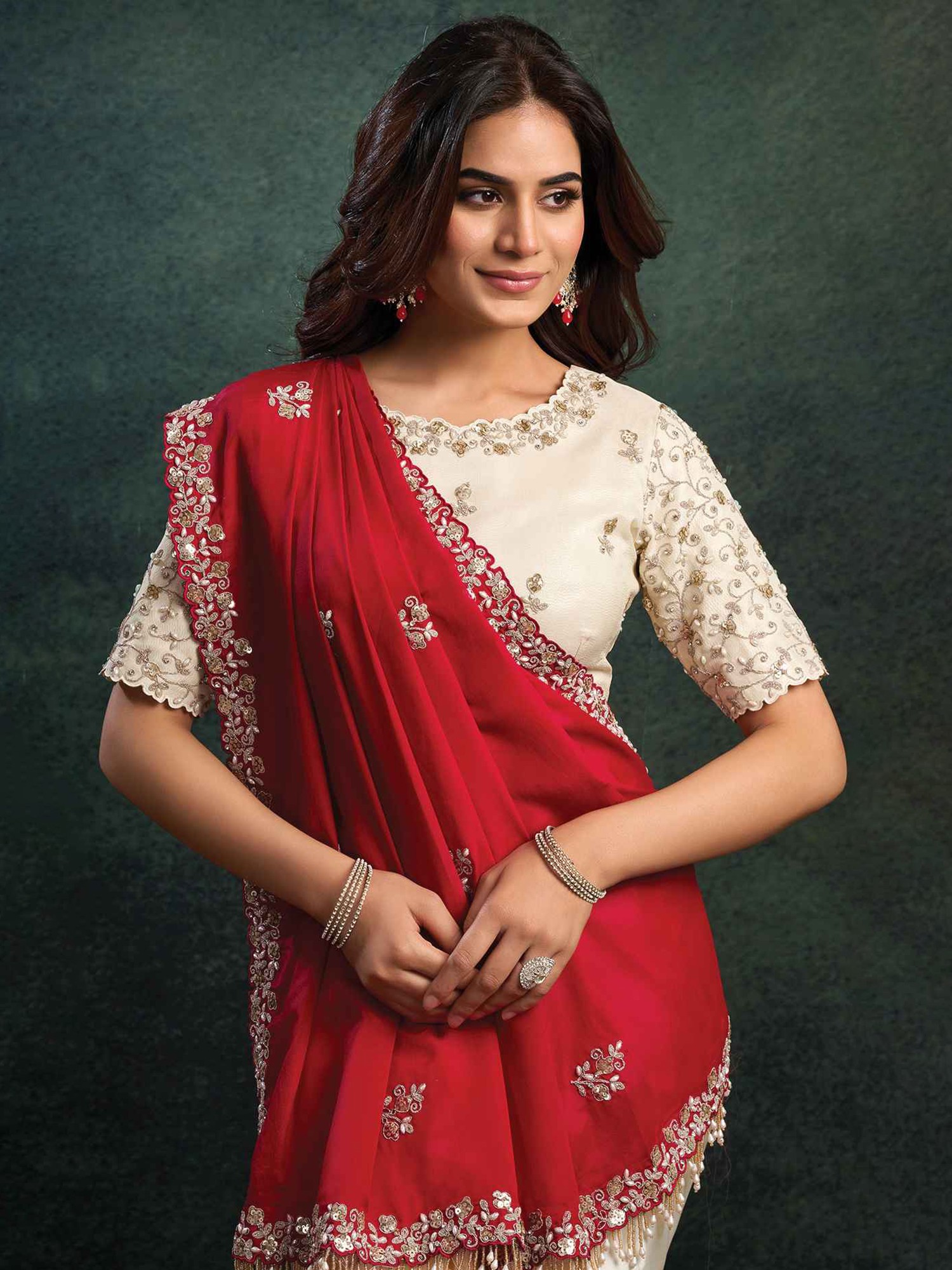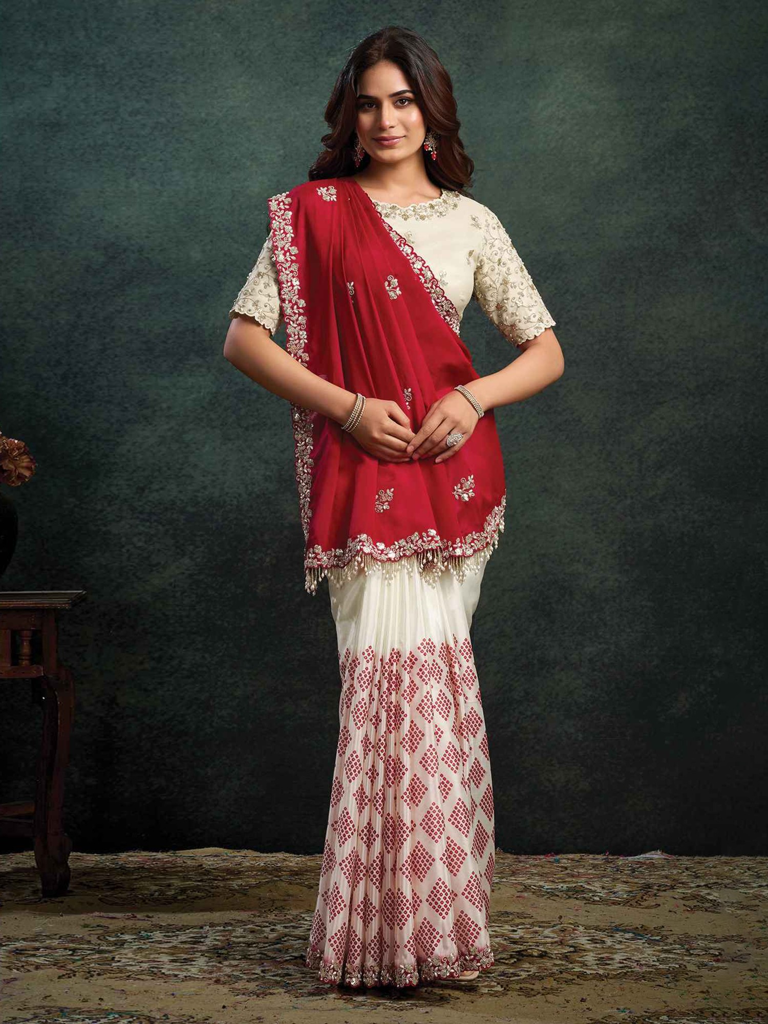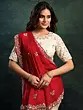 Wedding and Festive Wear Paper Satin Silk Saree with Swarovski and Scallop Zardozi Embroidery in Elegant Traditional Designer Style