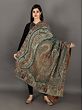 Embrace the regal elegance of our proud-peacock woolen Jamawar shawl adorned with exquisite woven paisley and flower motifs. This shawl is a masterpiece that marries the warmth of wool with the intricate beauty of traditional craftsmanship. Crafted from fine wool this shawl offers both comfort and style. Its rich and lush colors capture the iridescent beauty of a peacock’s plumage, making it a striking addition to any attire.