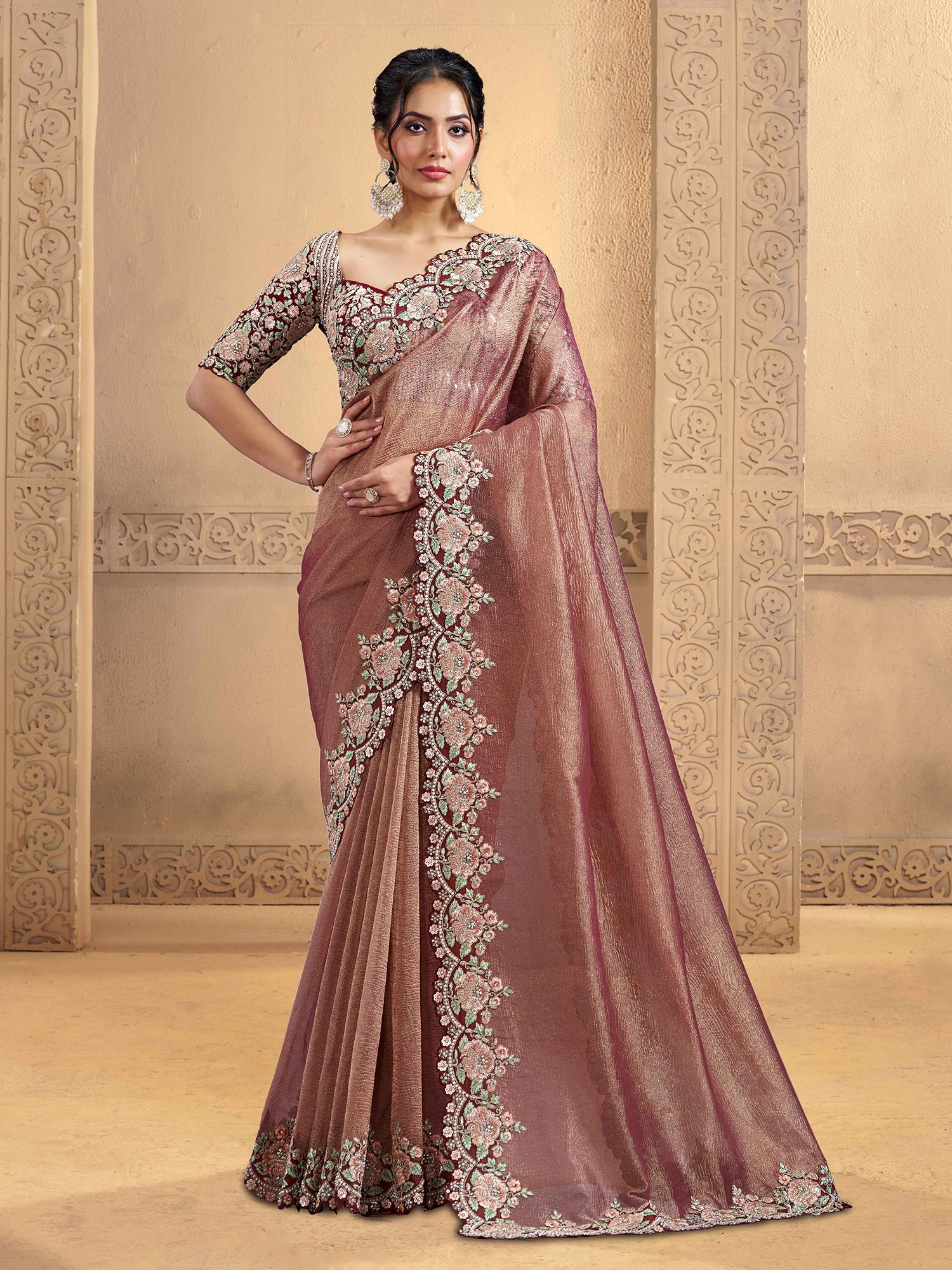 Zari Organza Silk Saree With Sequins Embroidery Stone And Applique Work Designer Party Wear Saree For Women