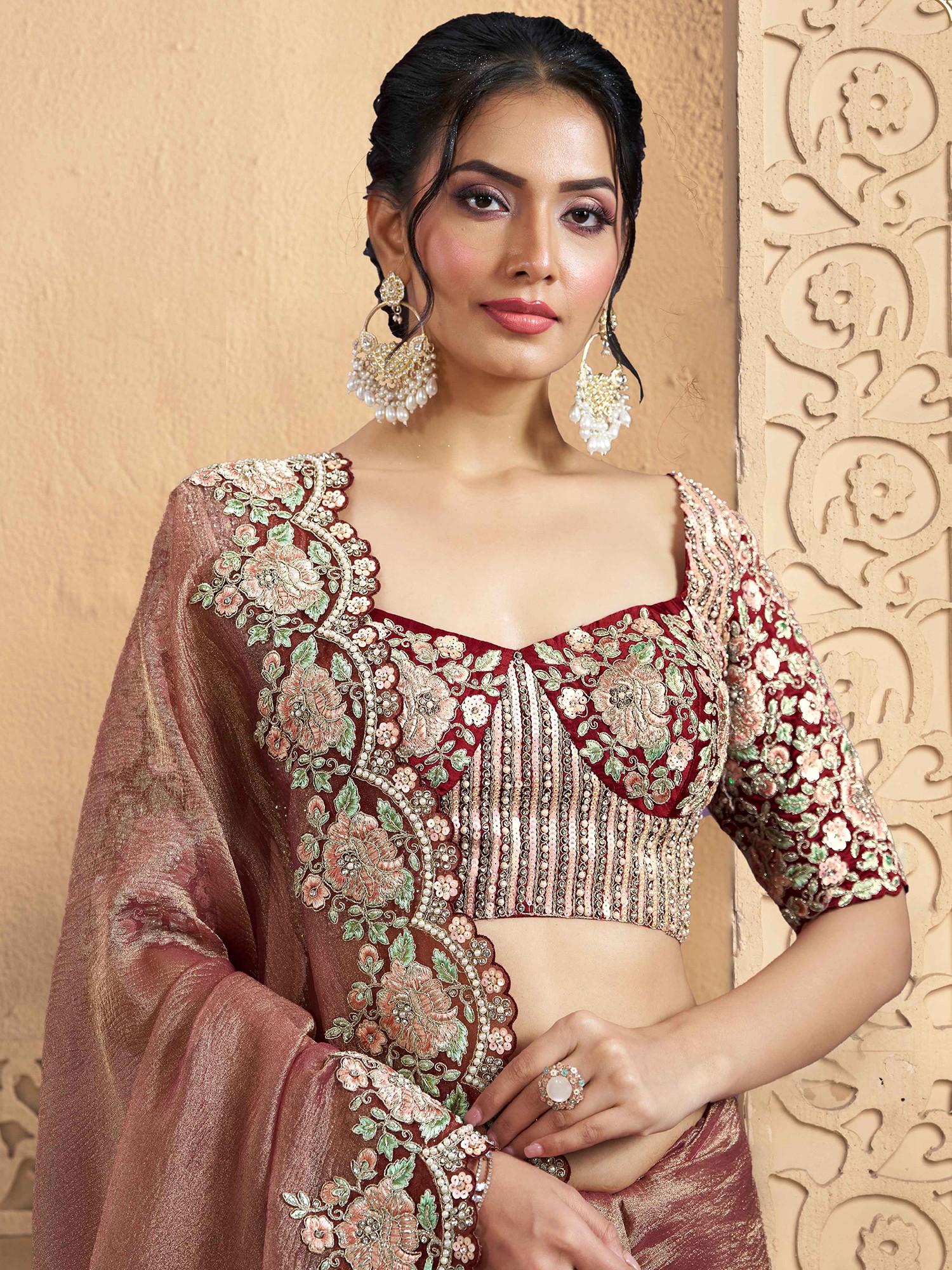 Pure Banarasi Crush Saree With Sequin And Moti Work Traditional Designer Saree For Wedding Festive And Party Wear