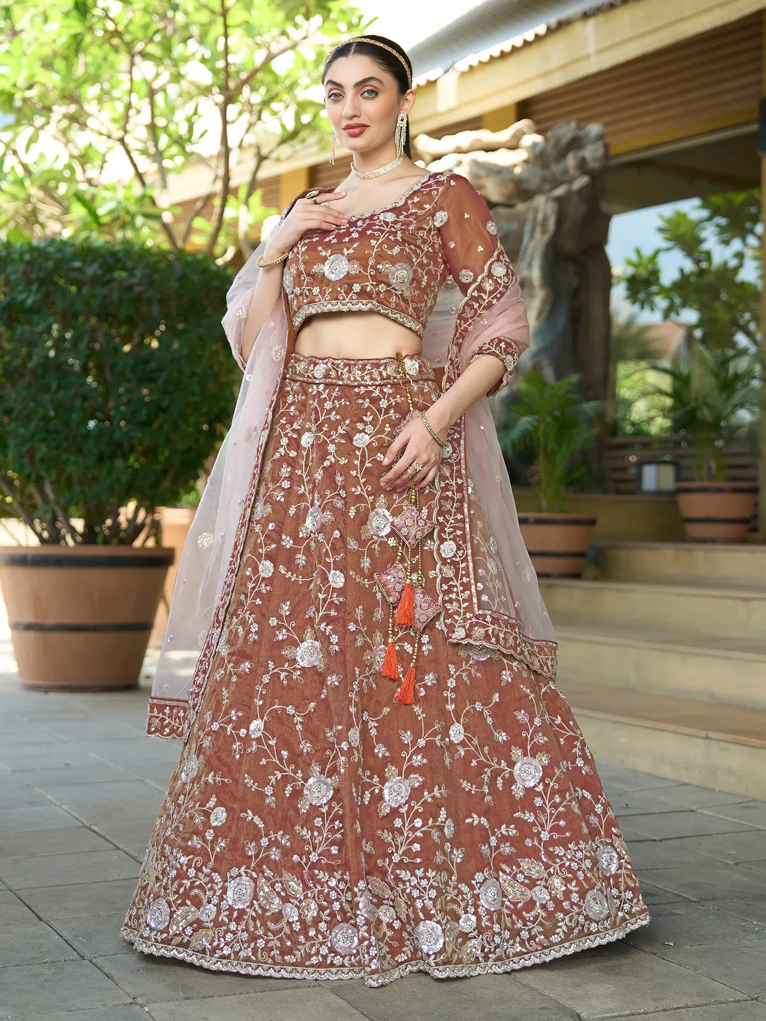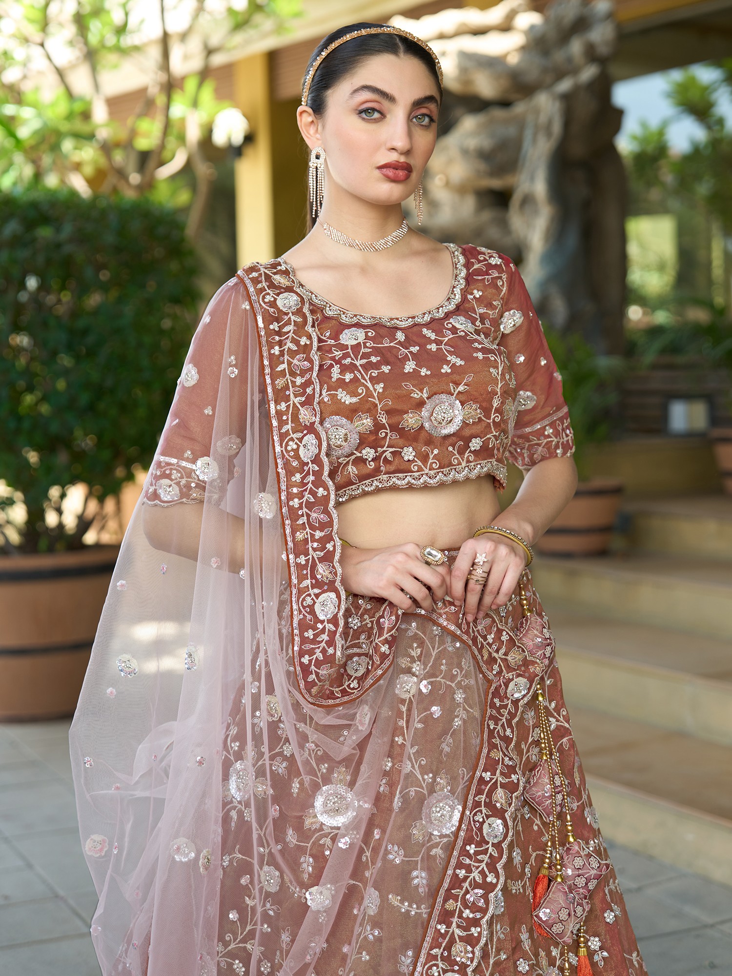 Pure Cosmos Tissue Embroidery And Sequins Work Attractive Lehenga Choli With Premium Net Dupatta