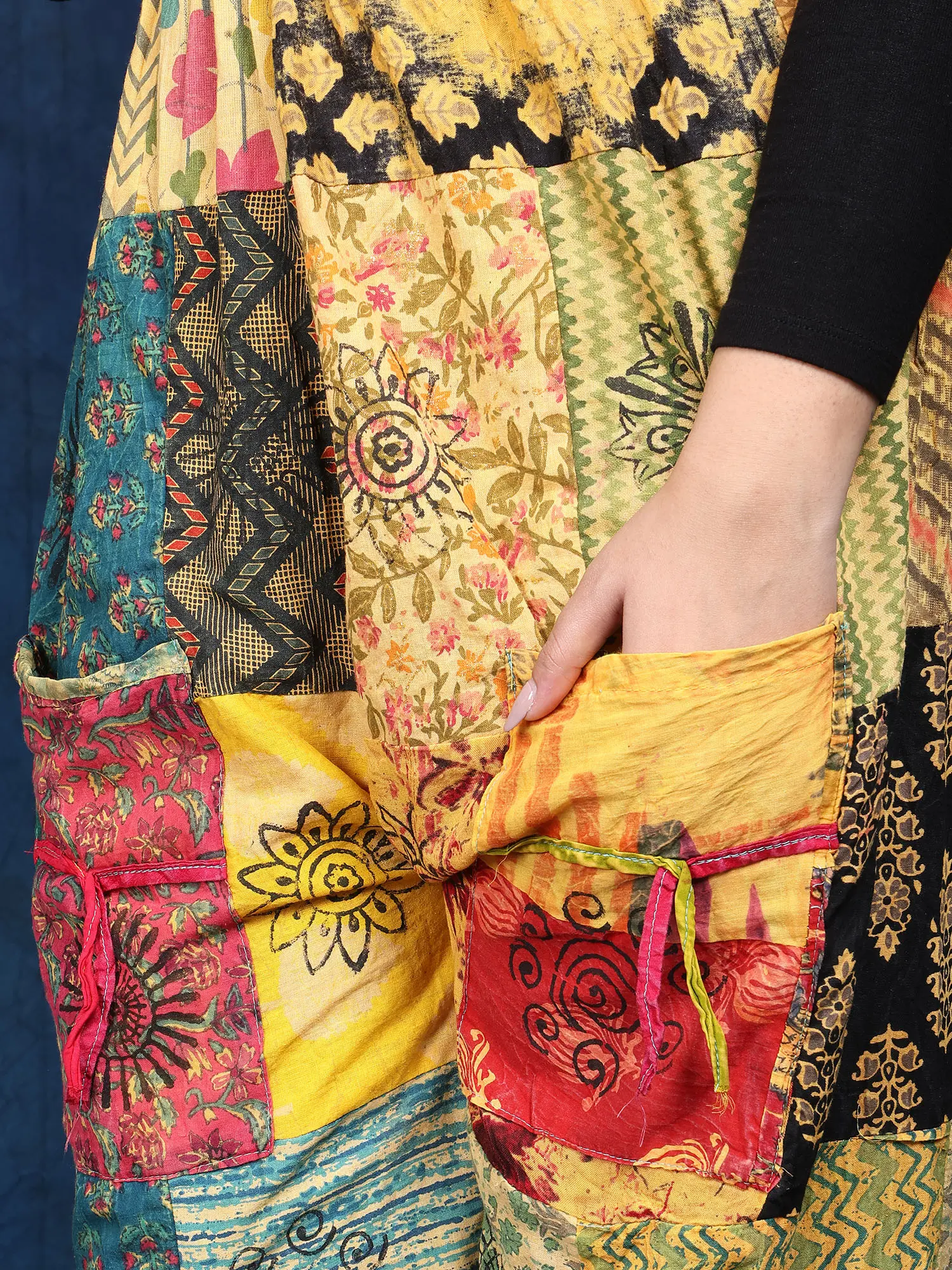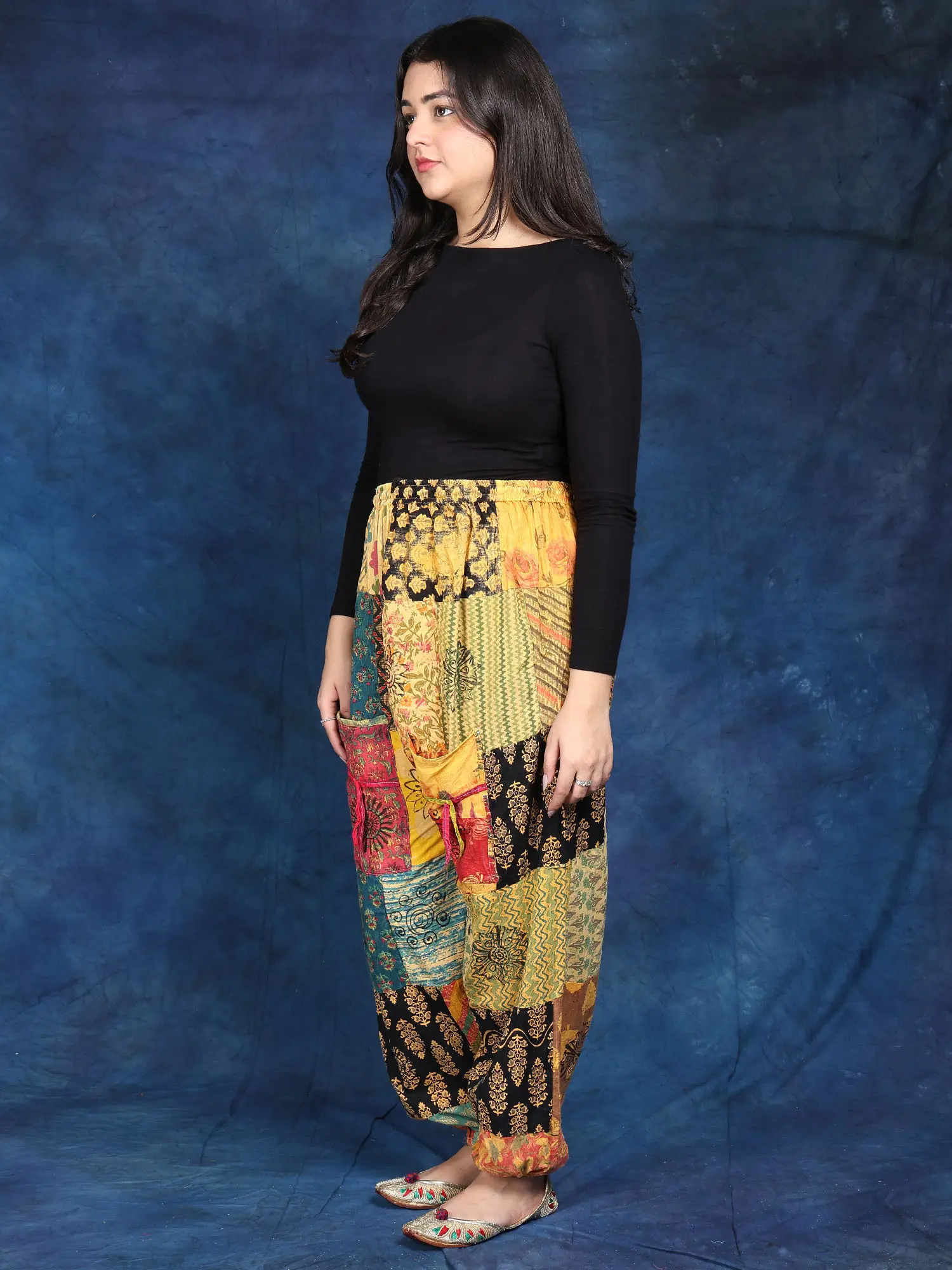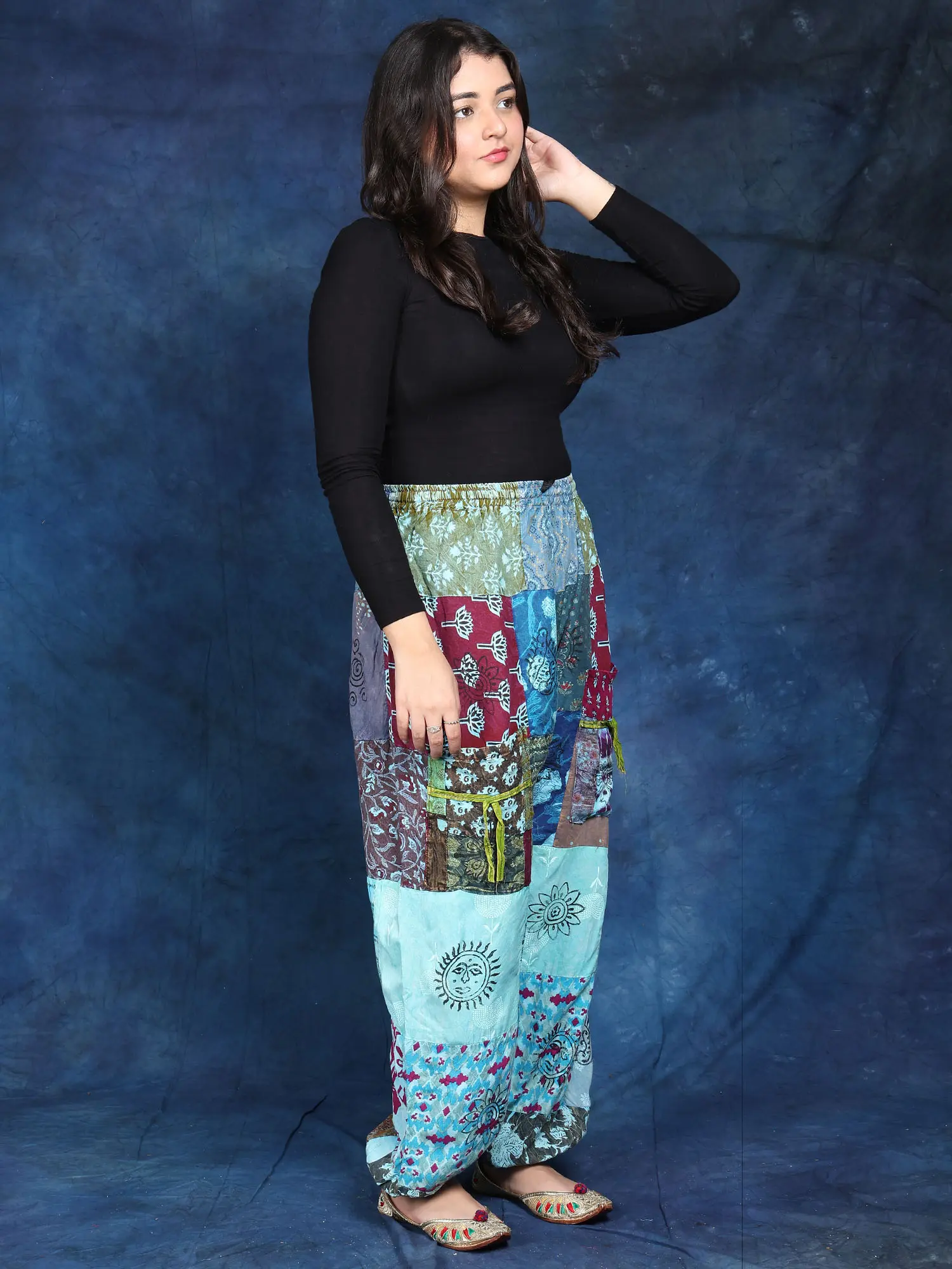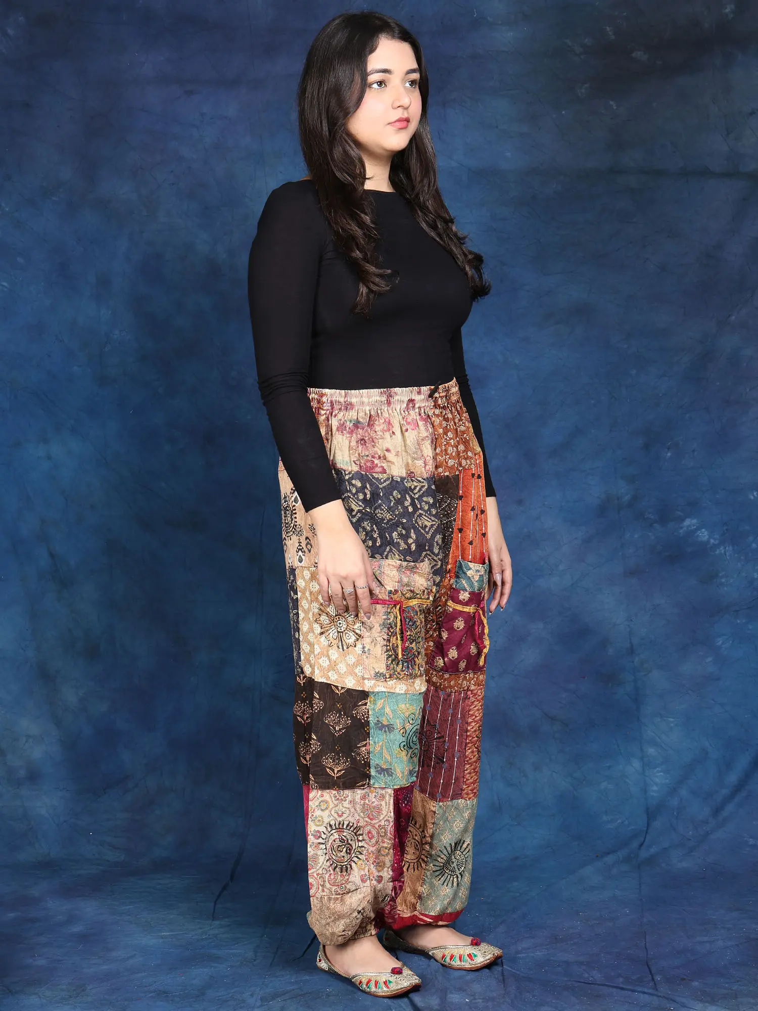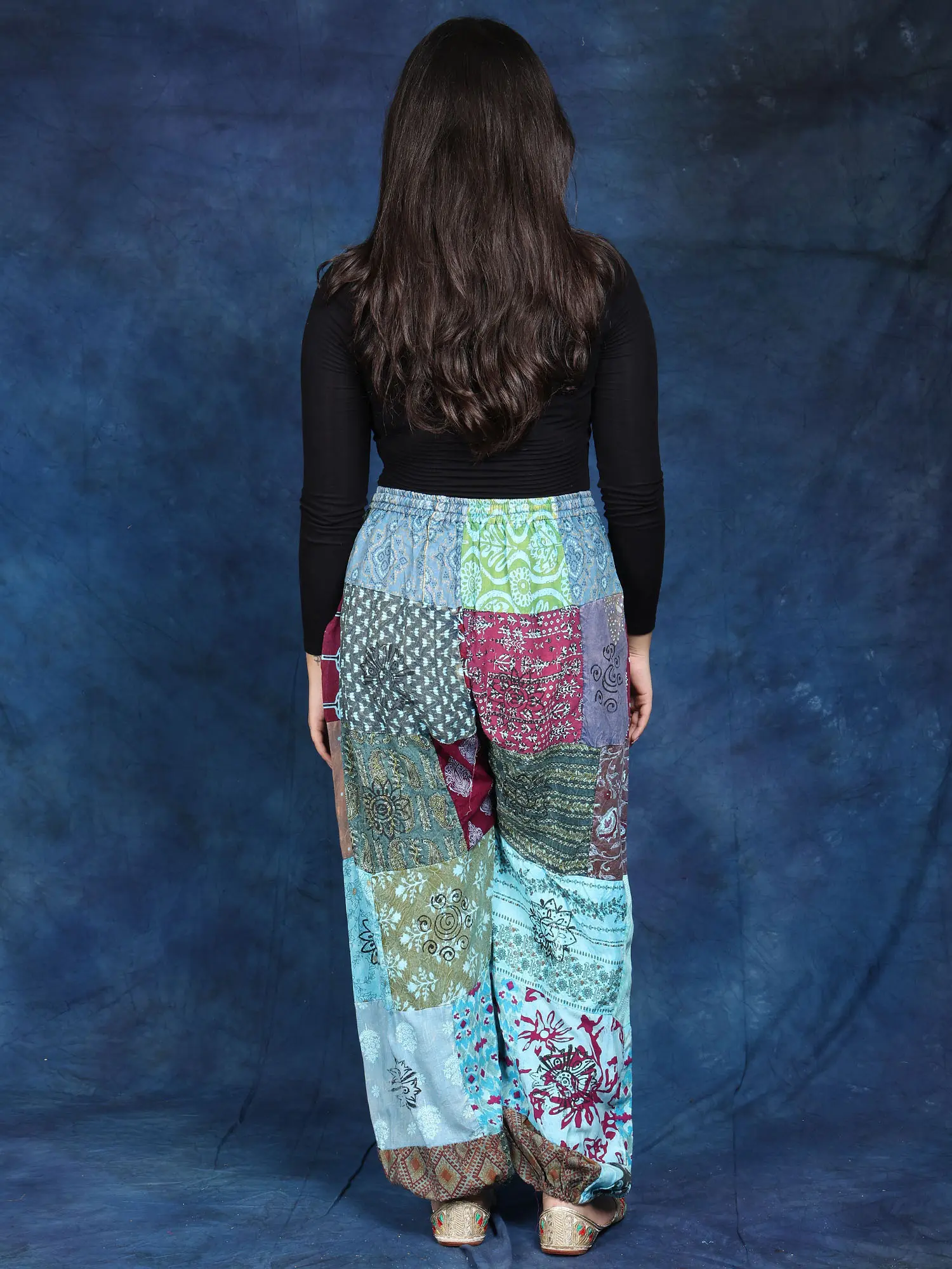 These stunning trousers are a celebration of vibrant colors and unique patterns. Crafted from 100% pure cotton, they offer unparalleled comfort and breathability, perfect for warm weather or relaxed lounging. The patchwork design is a true work of art, showcasing a captivating mix of traditional Indian prints and modern aesthetics. Each panel tells a story, creating a truly one-of-a-kind piece that's sure to turn heads. The rich hues and intricate details make these trousers a statement piece, adding a touch of bohemian flair to any outfit.
