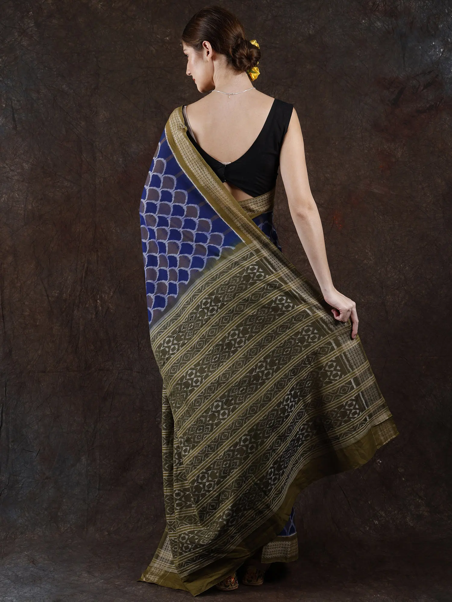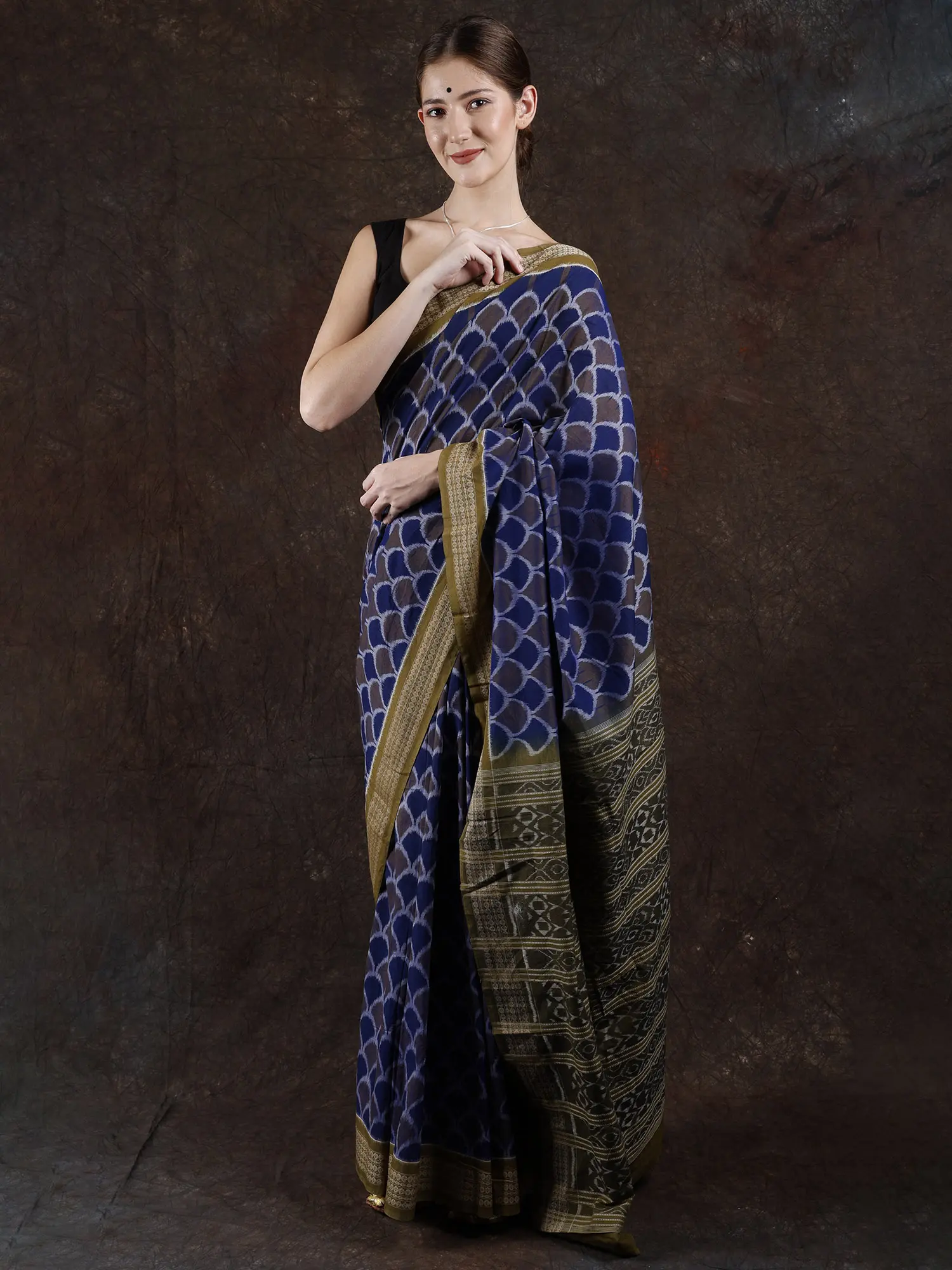 Cedar-Green Sambalpuri Stole from Odisha with Ikat Weave