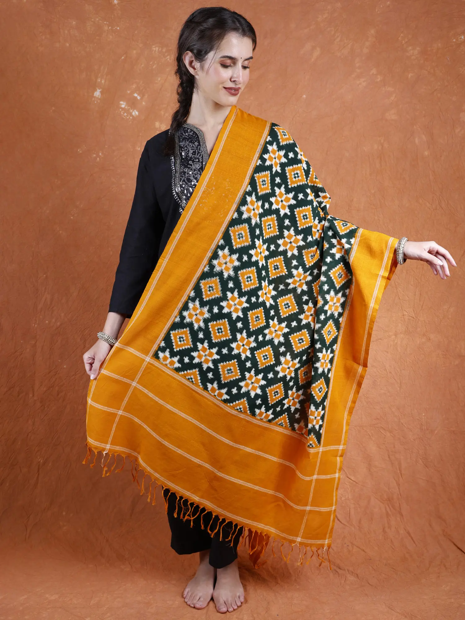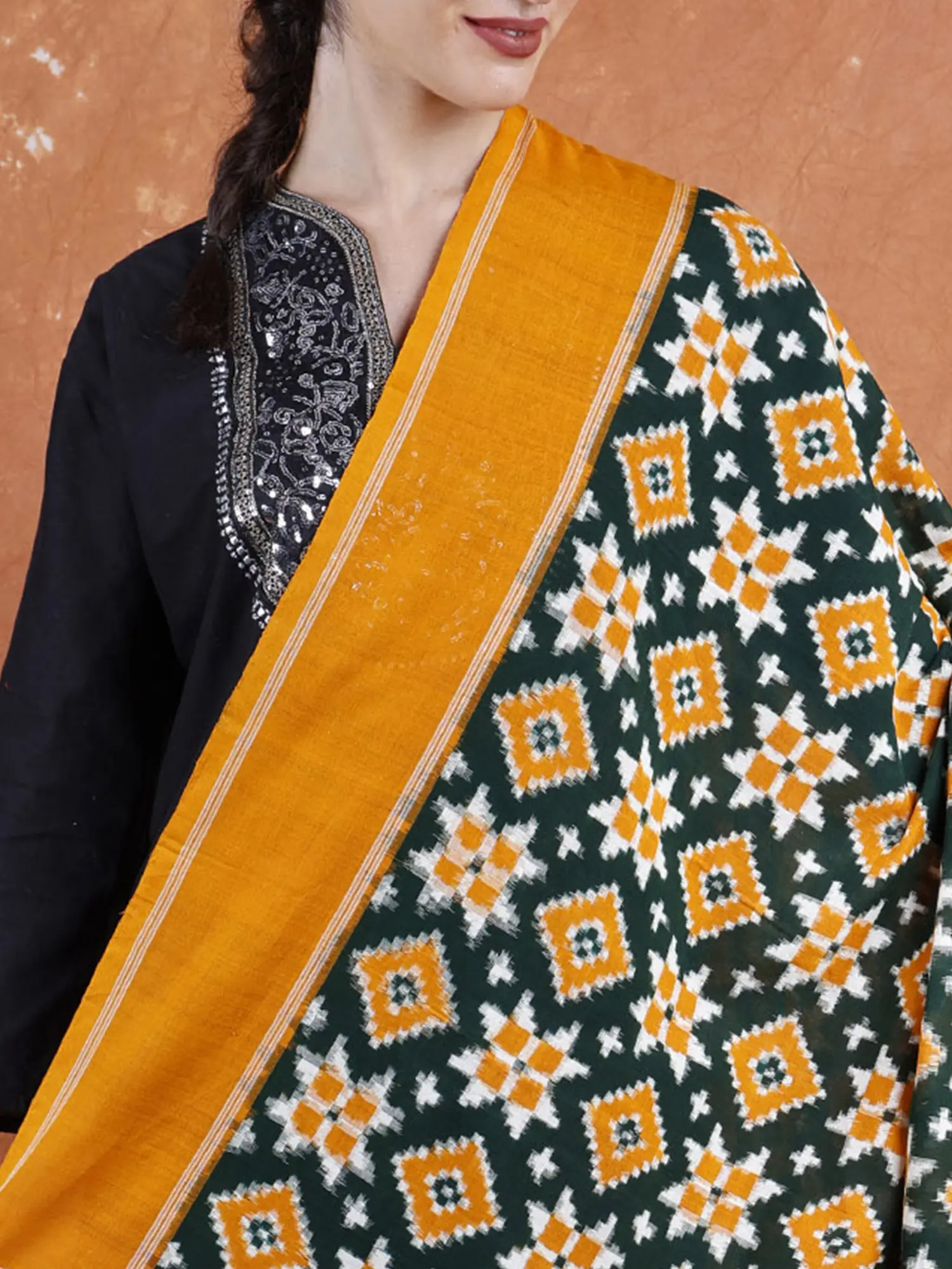 Cedar-Green Sambalpuri Stole from Odisha with Ikat Weave
