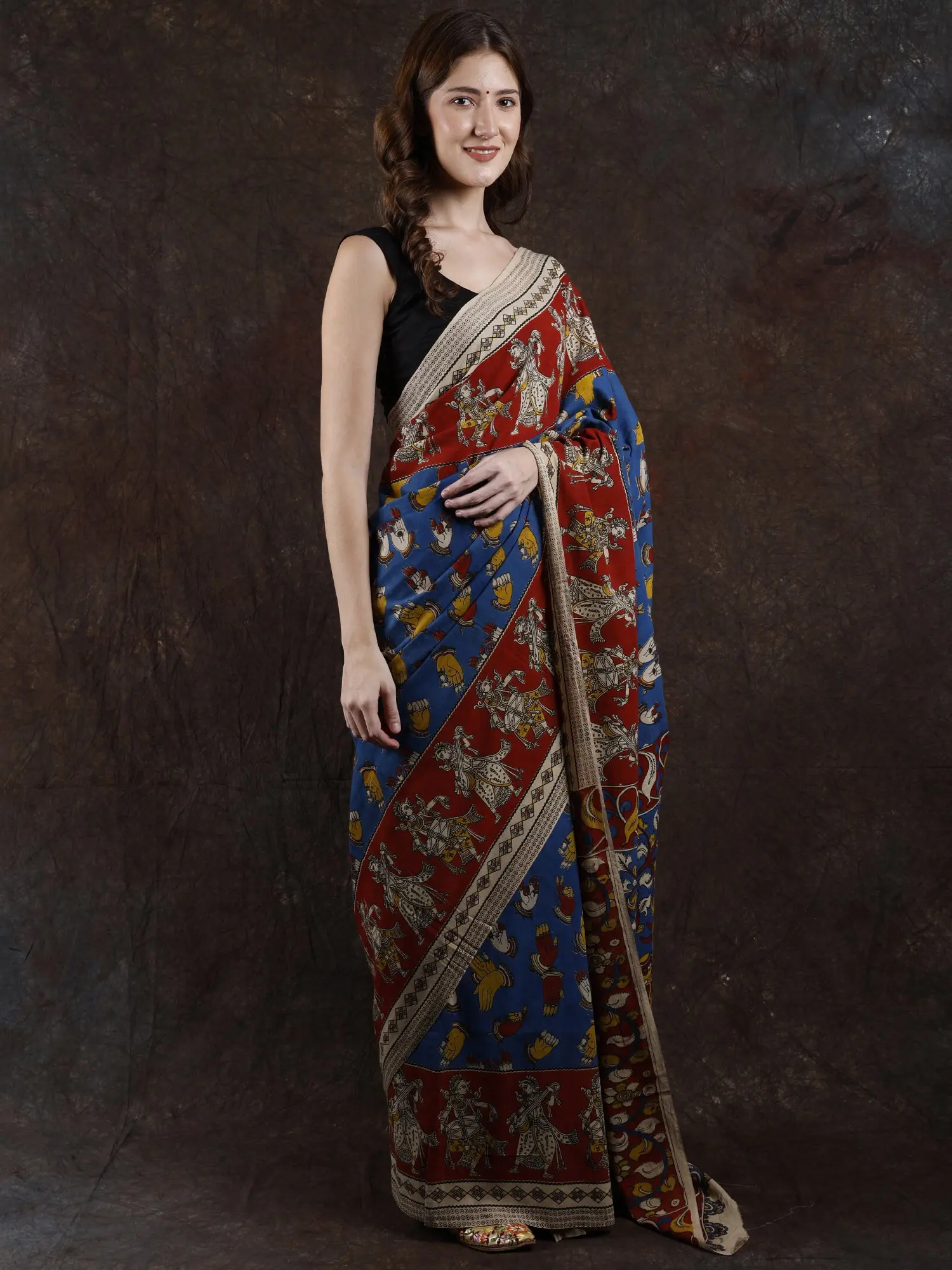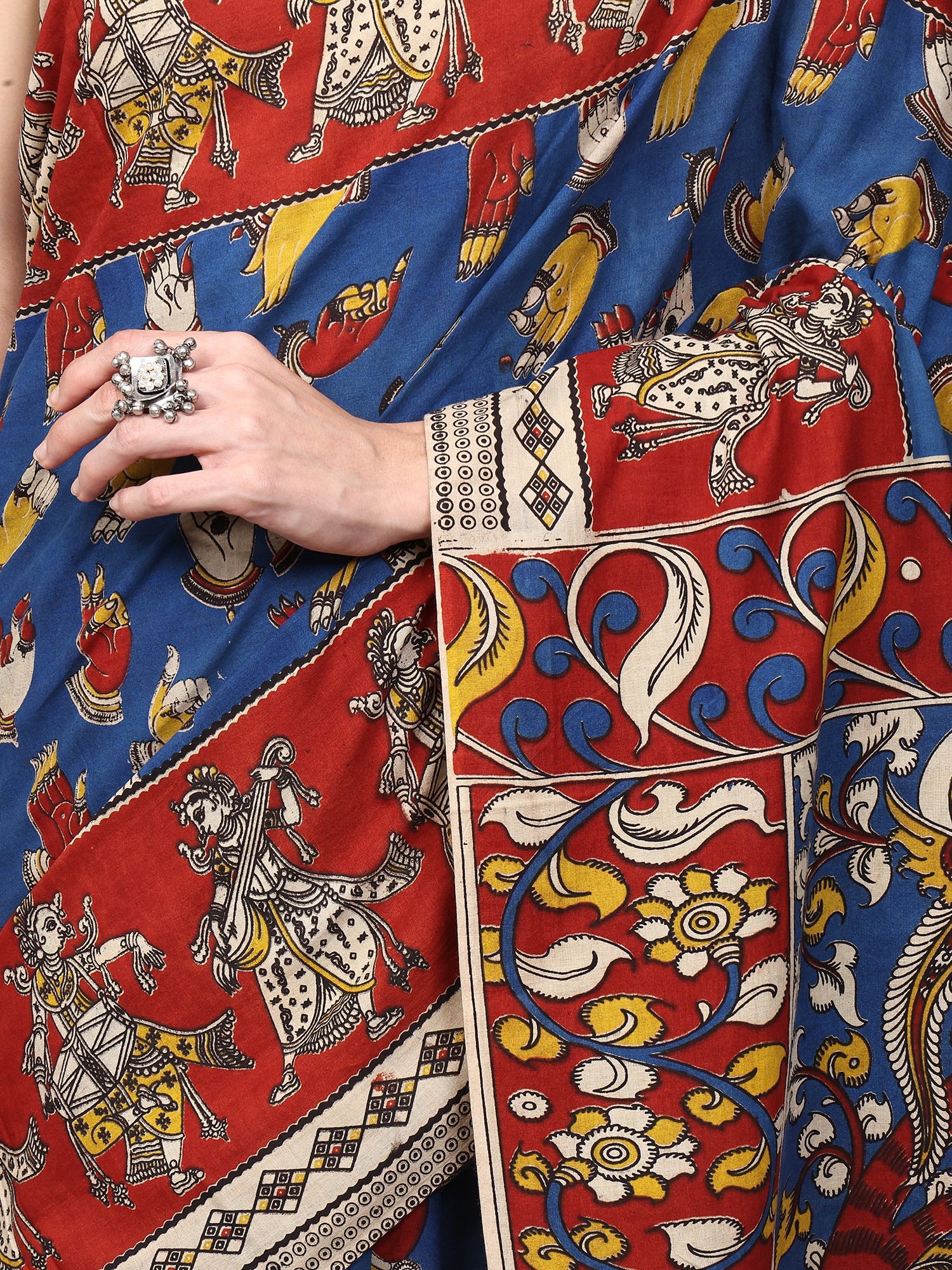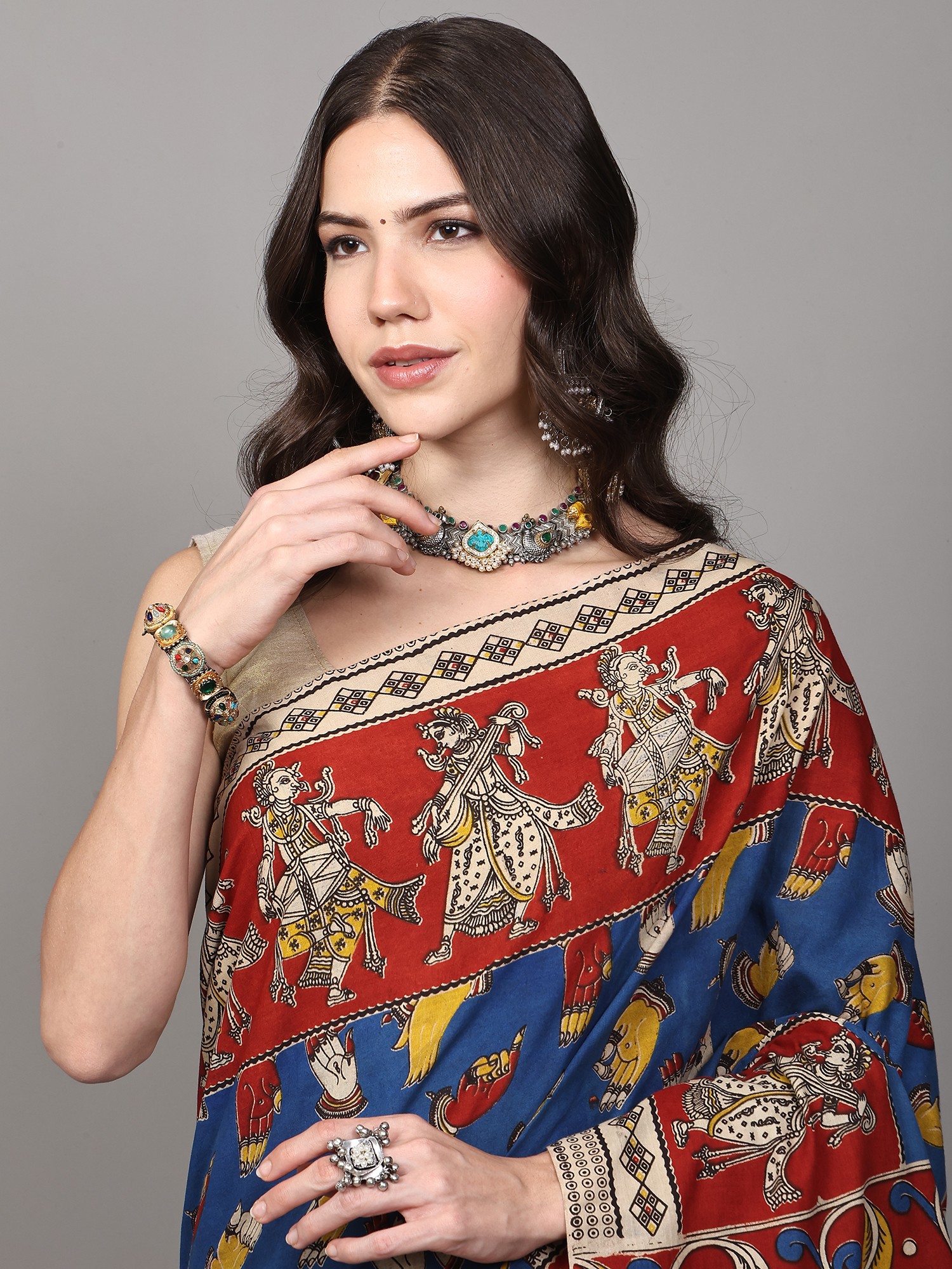 Stretch-Limo Kalamkari Dupatta from Telangana with Zari Border and Printed Paisleys