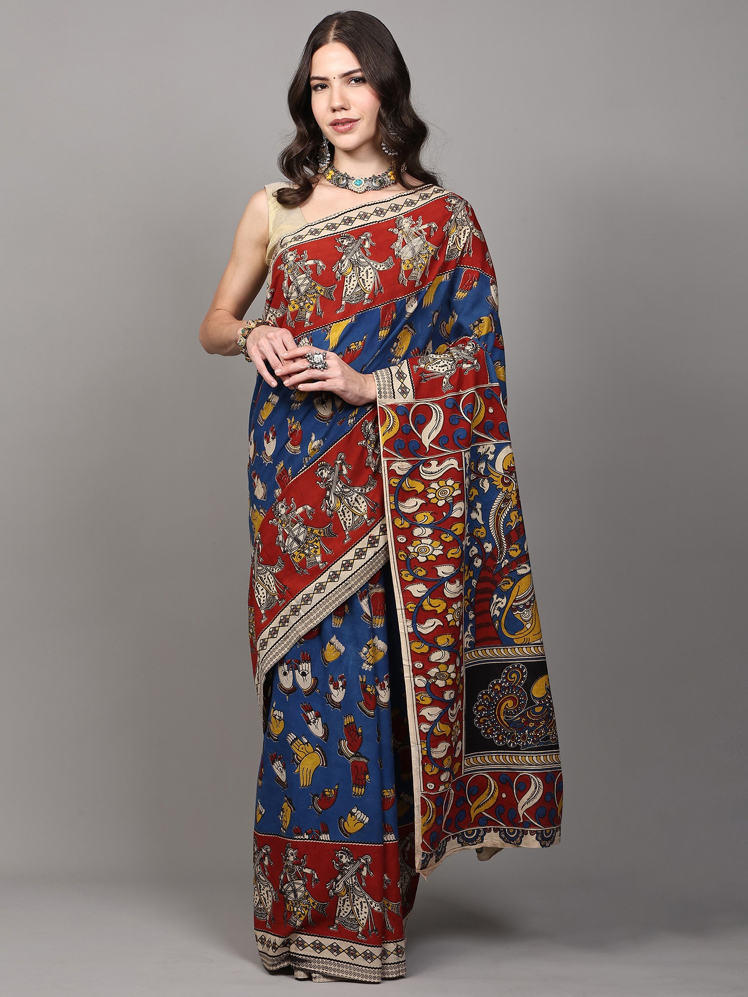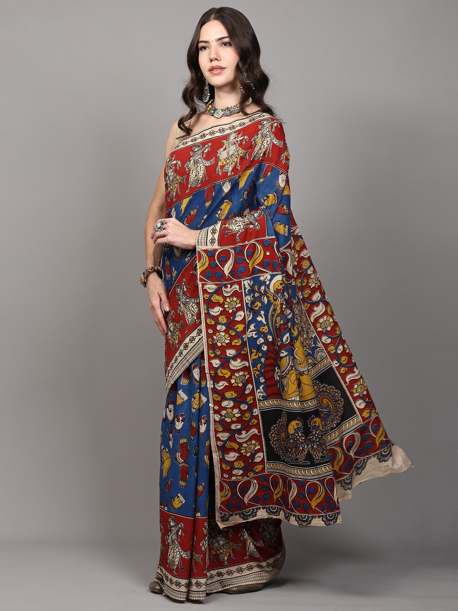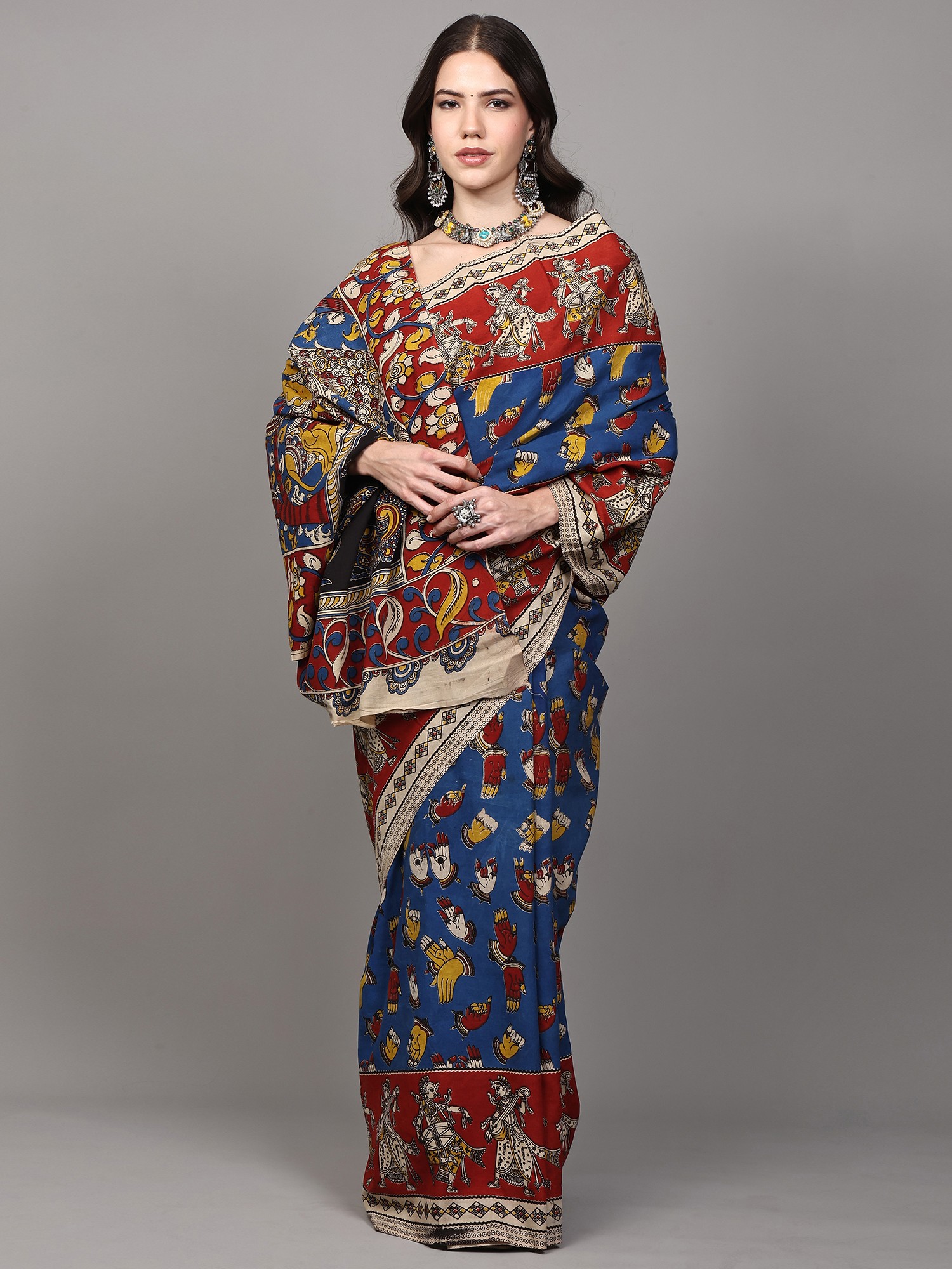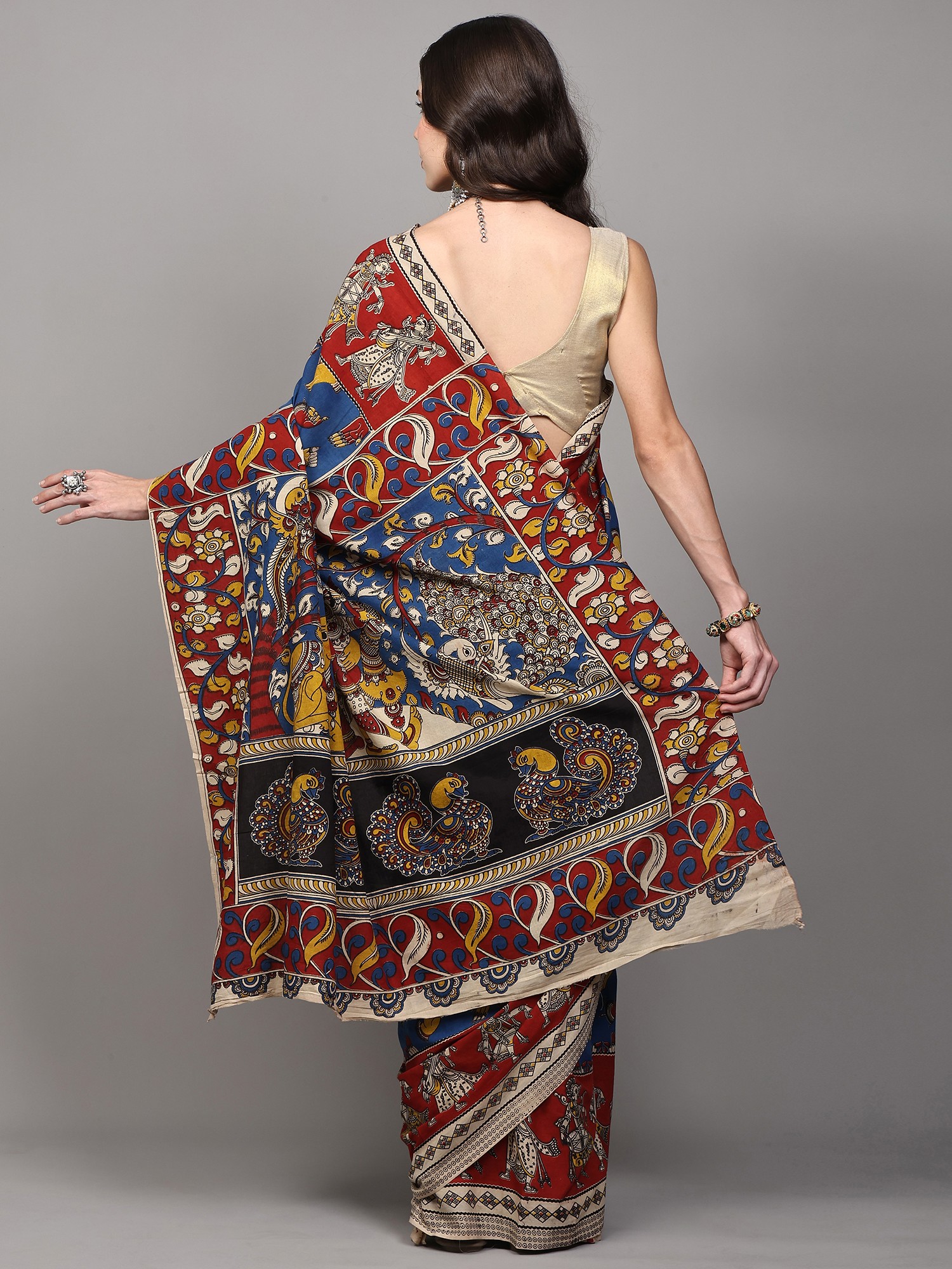 Stretch-Limo Kalamkari Dupatta from Telangana with Zari Border and Printed Paisleys