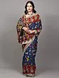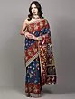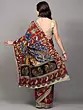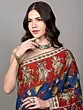 Black-Ink Floral Printed Kalamkari Dupatta from Telangana with Zari Woven Border and Dancing Apsaras