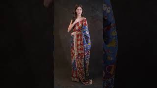 Pistachio-Shell Kalamkari Dupatta with Pen Art Hand-Painted Kathakali Dancing Ladies from Telangana