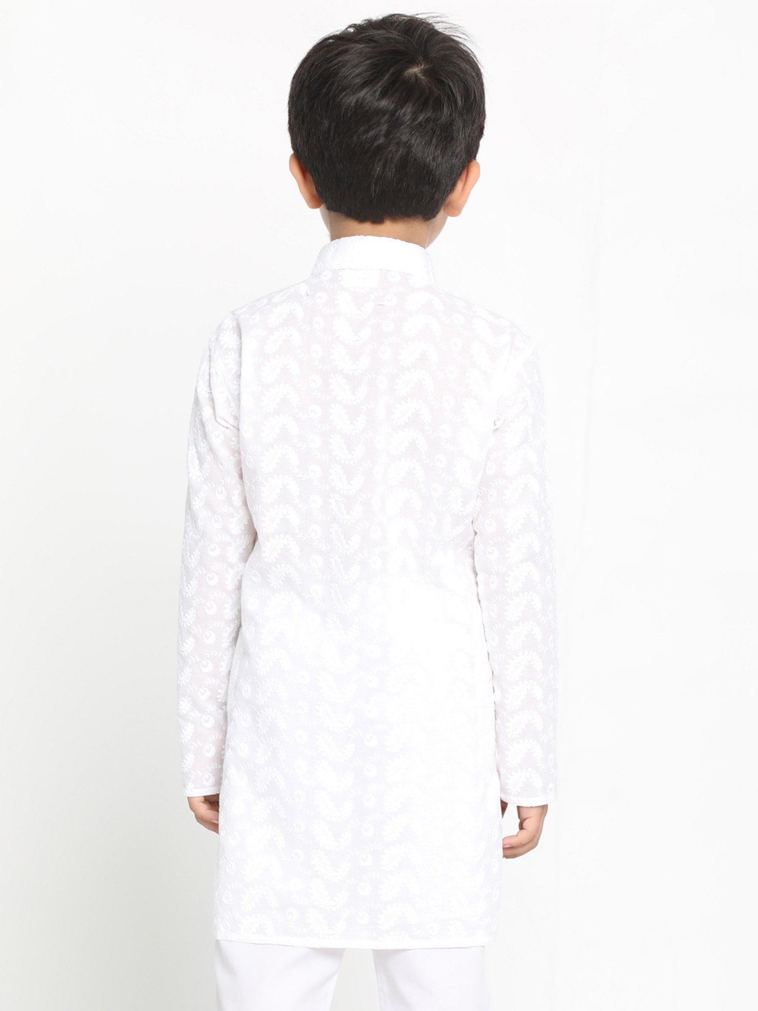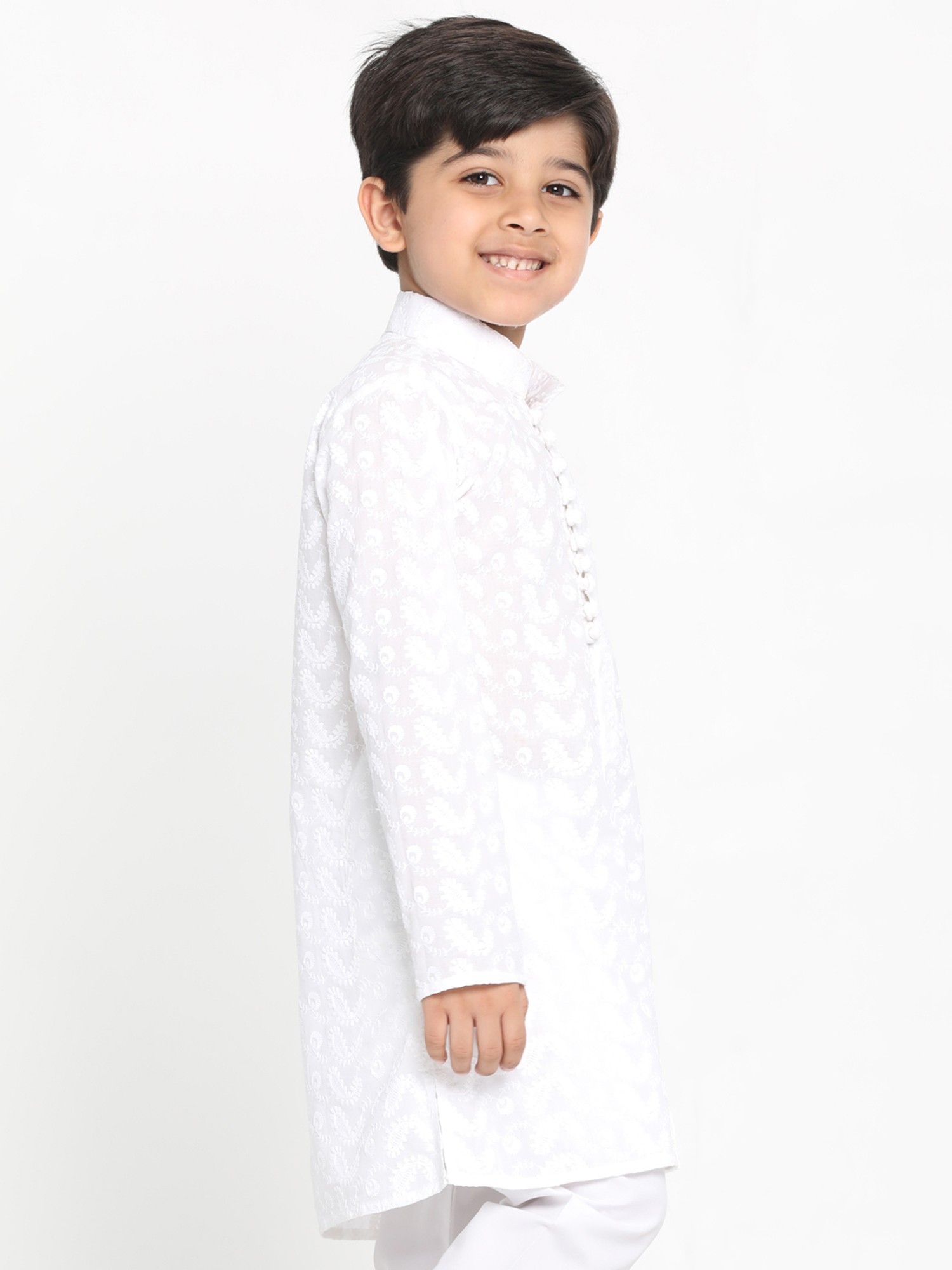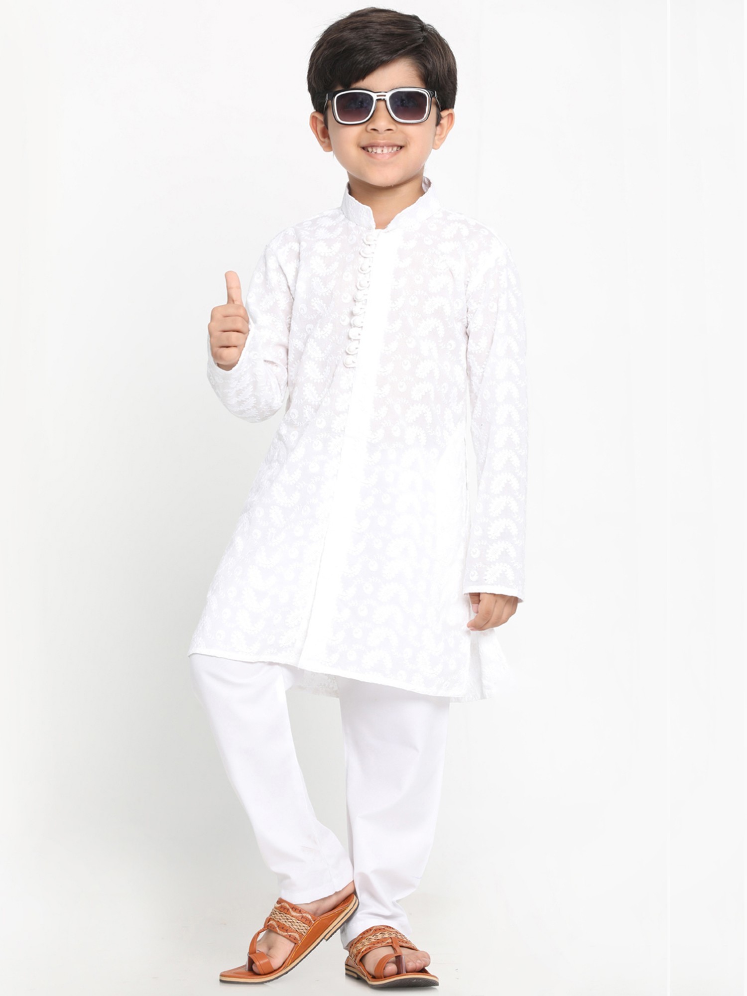Cotton Plain White Kurta Pajama With Dotted Pattern Digital Print Velvet Modi Jacket