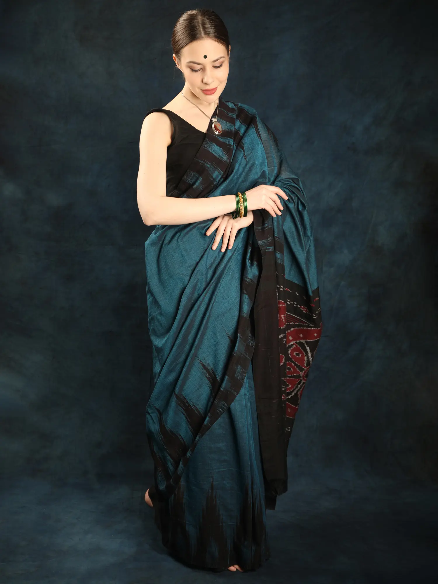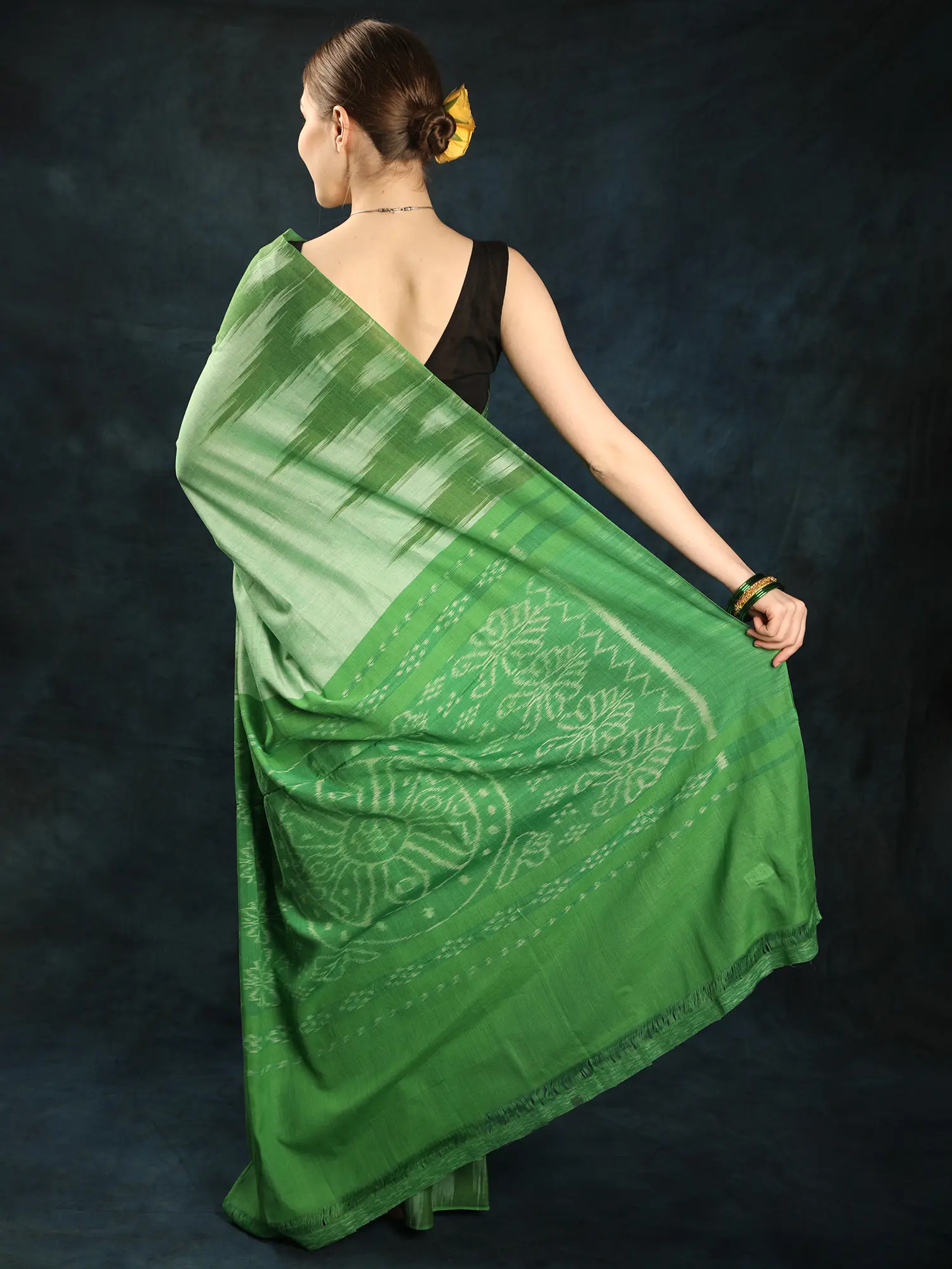 Discover the allure of tradition and craftsmanship with this exquisite Sambhalpuri saree, a testament to India's rich textile heritage. Woven from the finest pure cotton, this saree promises unparalleled comfort and breathability, making it an ideal choice for any occasion. The soothing green hue, reminiscent of lush landscapes, lends an air of serenity and sophistication to your ensemble.