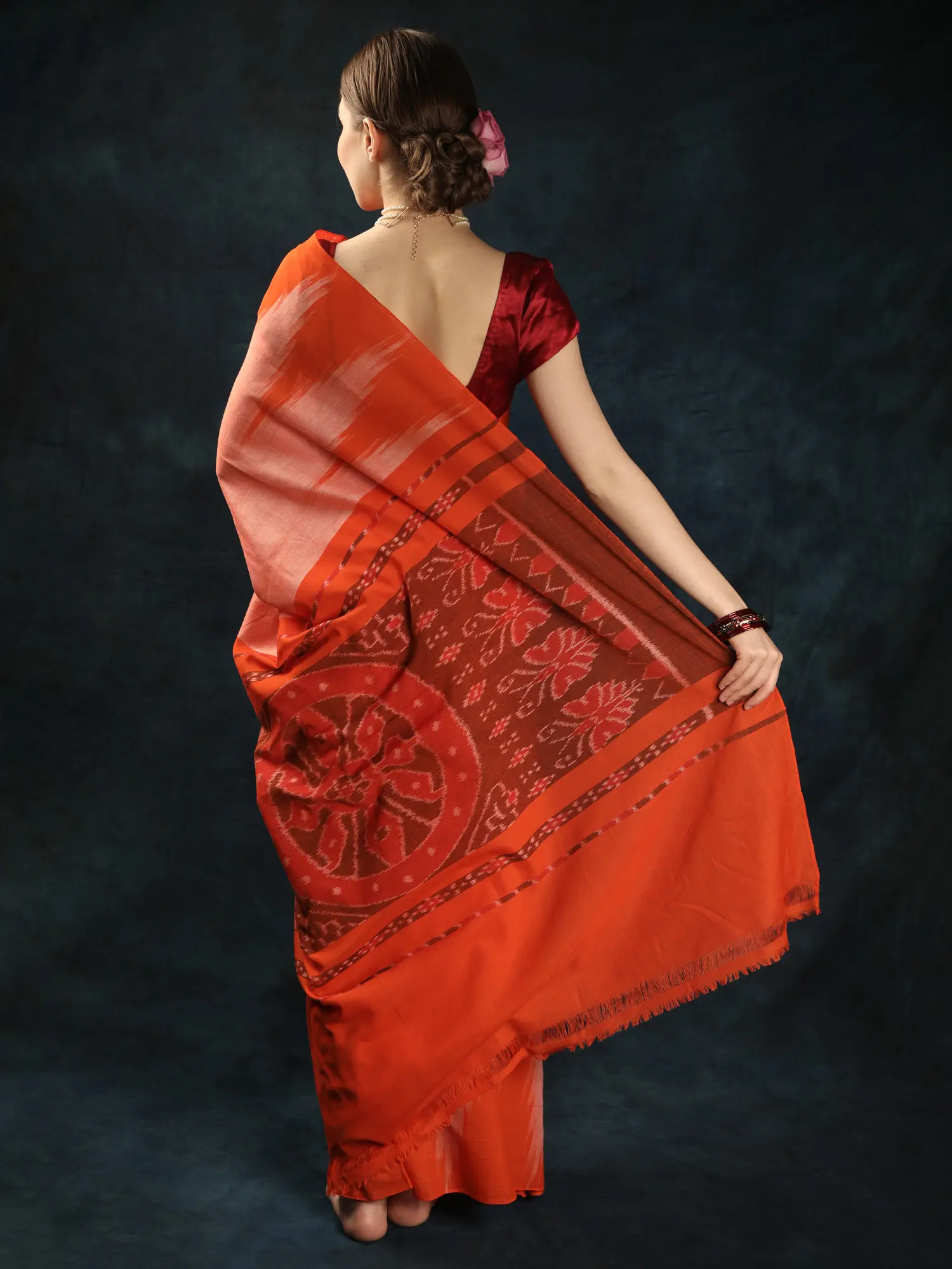 Crafted from pure cotton, this Sambhalpuri saree offers a soft, natural feel against the skin. The fabric drapes effortlessly, creating a graceful silhouette that flatters every figure. Whether you are attending a wedding, a festive celebration, or a formal gathering, this saree will ensure you stand out with its understated elegance and the richness of its artisanal weave. The subtle variations in the Ikat patterns ensure that each saree is a unique masterpiece, carrying the individual touch of the artisan who created it.