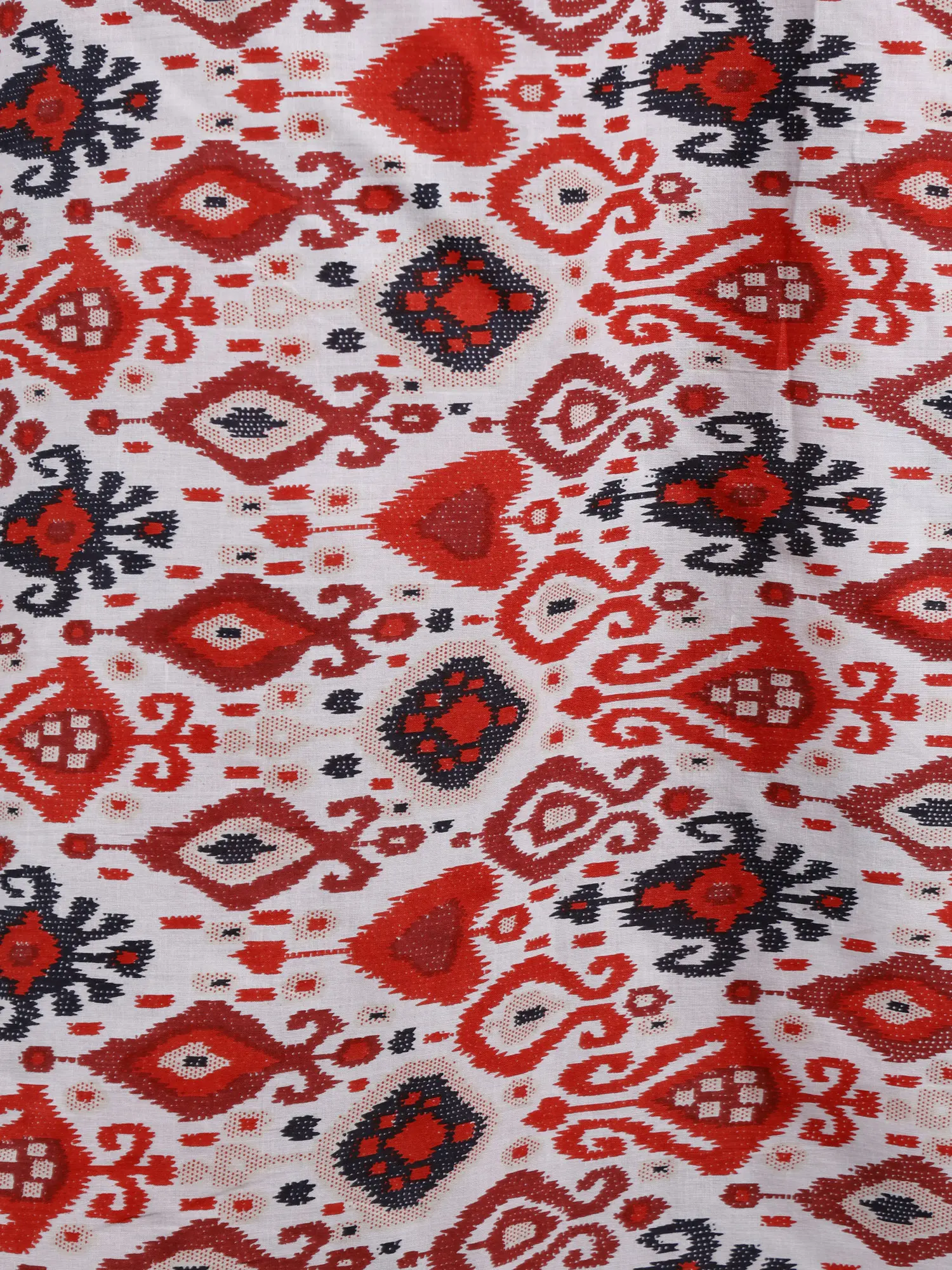 The Pure Cotton Wrap-On Long Skirt boasts a pristine white base, beautifully embellished with a multicolor Ikat pattern. This traditional design, inspired by the ancient art of Ikat weaving, infuses the skirt with a timeless quality that celebrates Indian fashion.