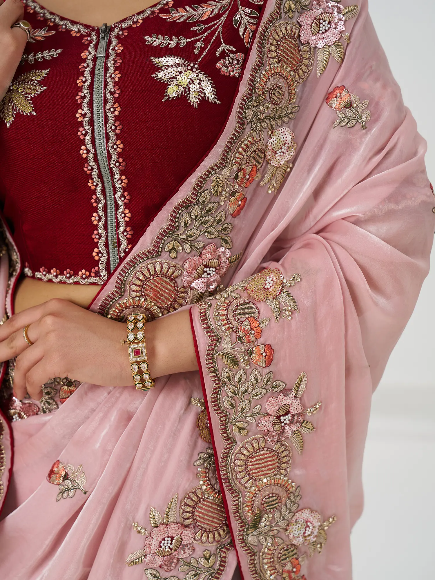 This saree is a perfect choice for a variety of occasions. Whether you're attending a wedding, a festive celebration, or a formal event, this saree will ensure you make a lasting impression. The elegant design and exquisite detailing make it a versatile addition to your wardrobe. The saree can be paired with a variety of blouses and accessories to create a personalized look that reflects your unique style. The underskirt and blouse will be tailor-made to your size, ensuring a perfectly fitting and comfortable experience.