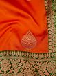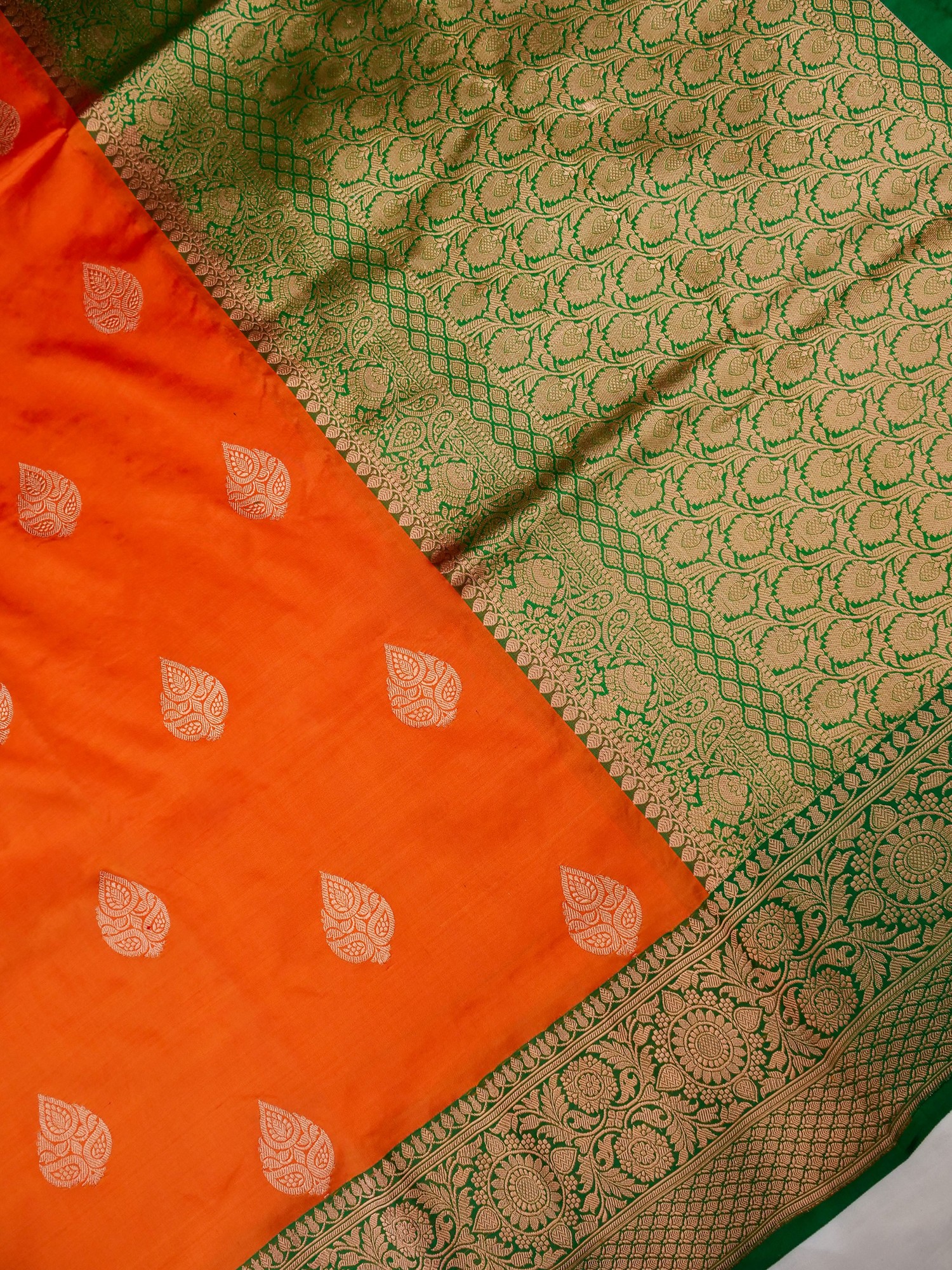 The choicest mulberry strands are used by the skilled weavers of Banaras, to bring to you these delicate and beautiful pure silk Banarasi sarees. Floral patterns and vines are linked in Indian art to the beginning of new stages, fertility, luxuriousness, and auspiciousness. By the use of these motifs on the body and the border of the silk saris, these are turned into gorgeous and propitious pieces of Indian traditional women’s wear, which you can pick for an upcoming event, and glow with the sheen of pure Katan silk.