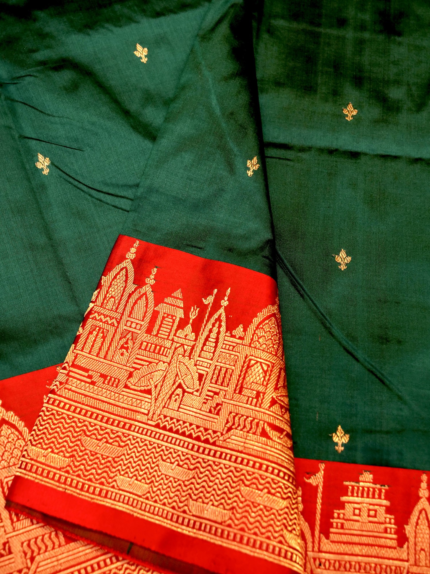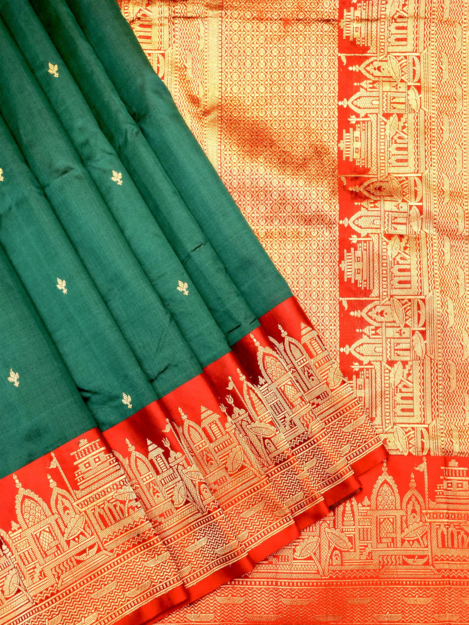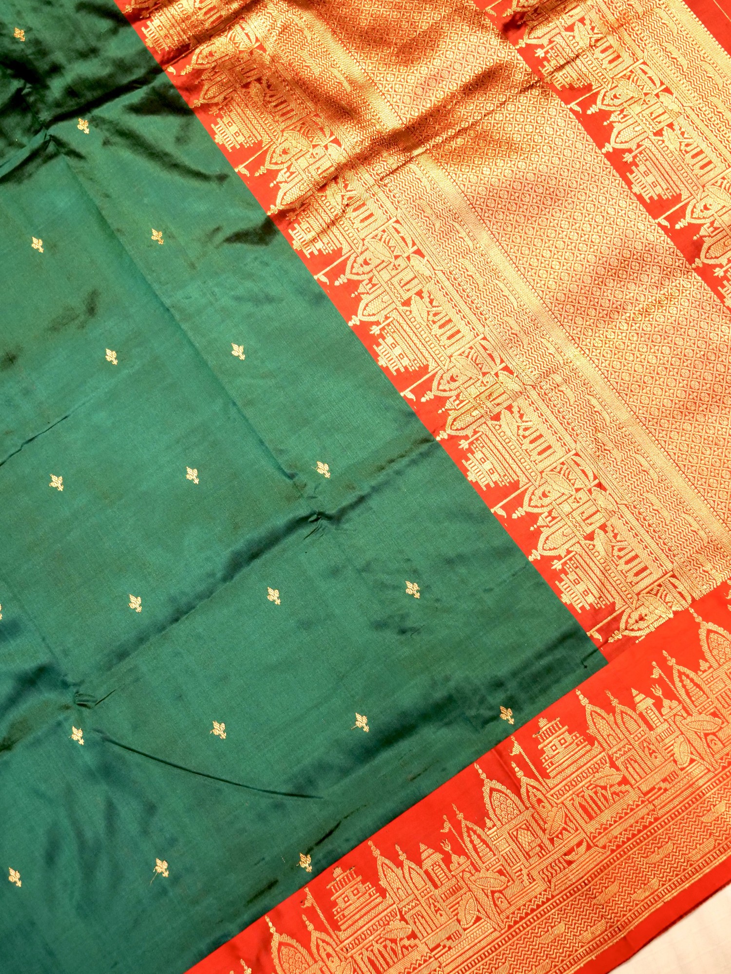 Pure Katan Silk Kashi Ghat Border Saree with All-Over Floral Bootis