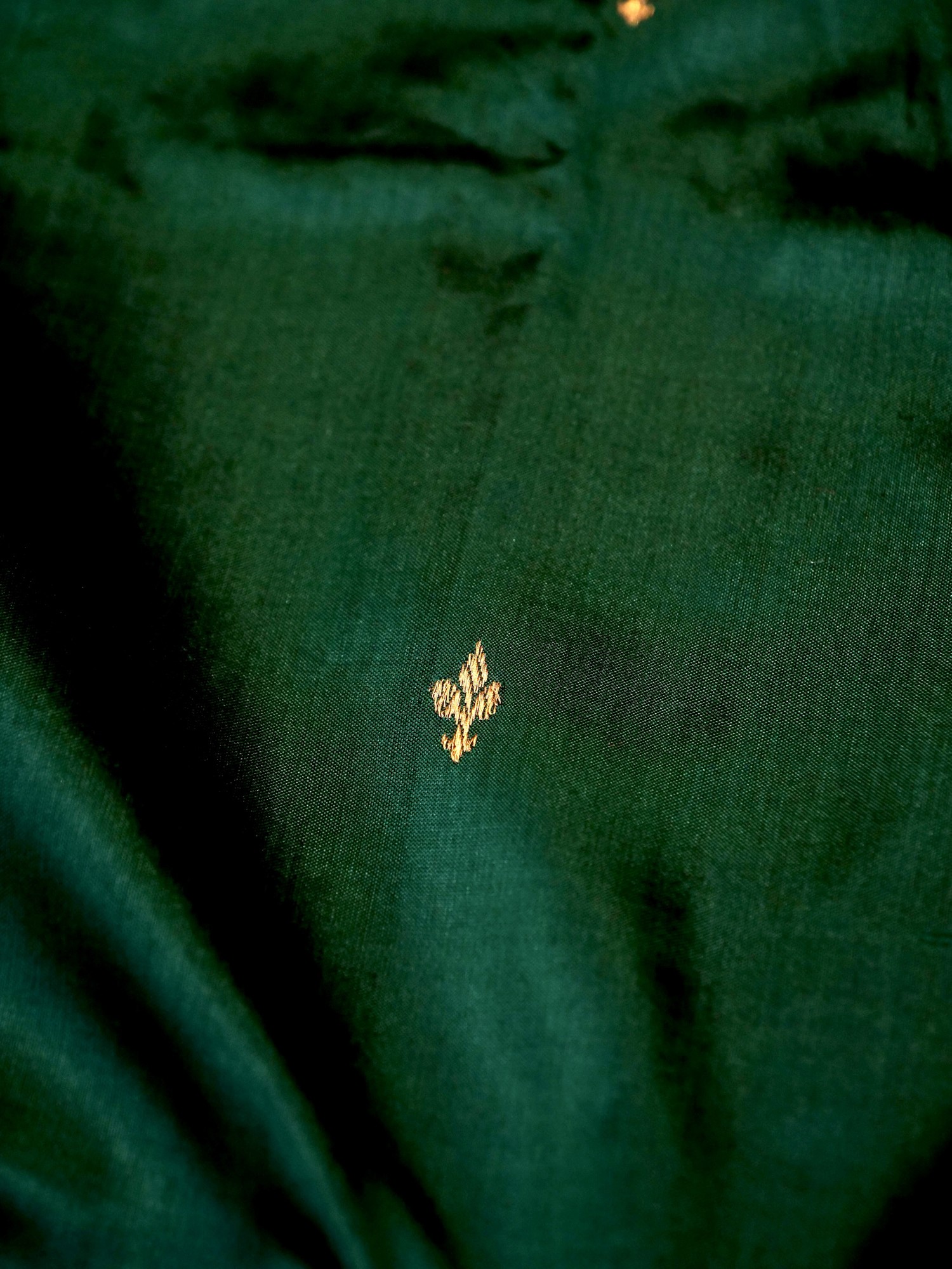 Cress-Green Kanjeevaram Silk Saree with Brocaded Zari Paisley-Floral Booti from Chennai