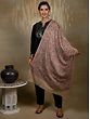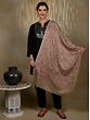 Pure Light Brown Stole with Red Paisley and Floral and Aari Threadwork from Kashmir