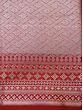 The border of the saree is adorned with geometric and naturalistic patterns, which highlight the beauty of a contrasting border. On the pallu, we see a lattice-like pattern outlined by tiny paisleys, the Indian motif for mangoes which represent fertility, newness, and abundance in life.