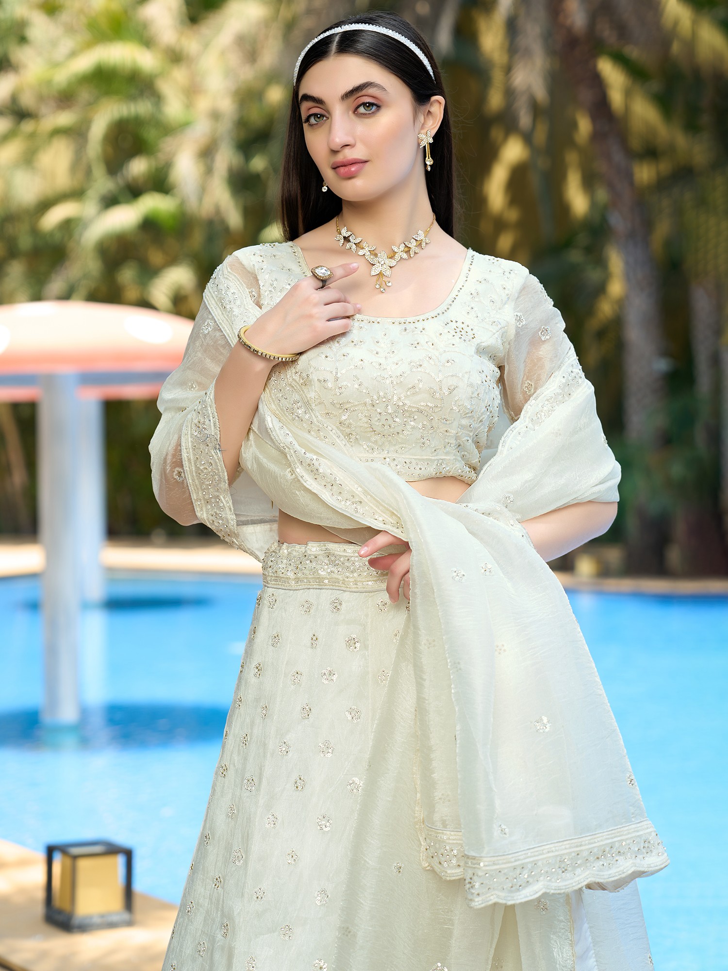 Cloud-Cream Saree from Banaras with Woven Bootis All-Over