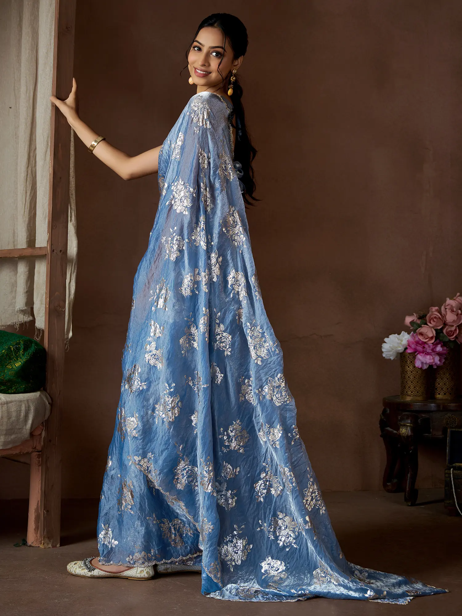 Dual Shade Pure Silk Saree with Golden Zari Woven Peacock-Elephant Motif Broad Border and Bold Aamra Motif on Pallu