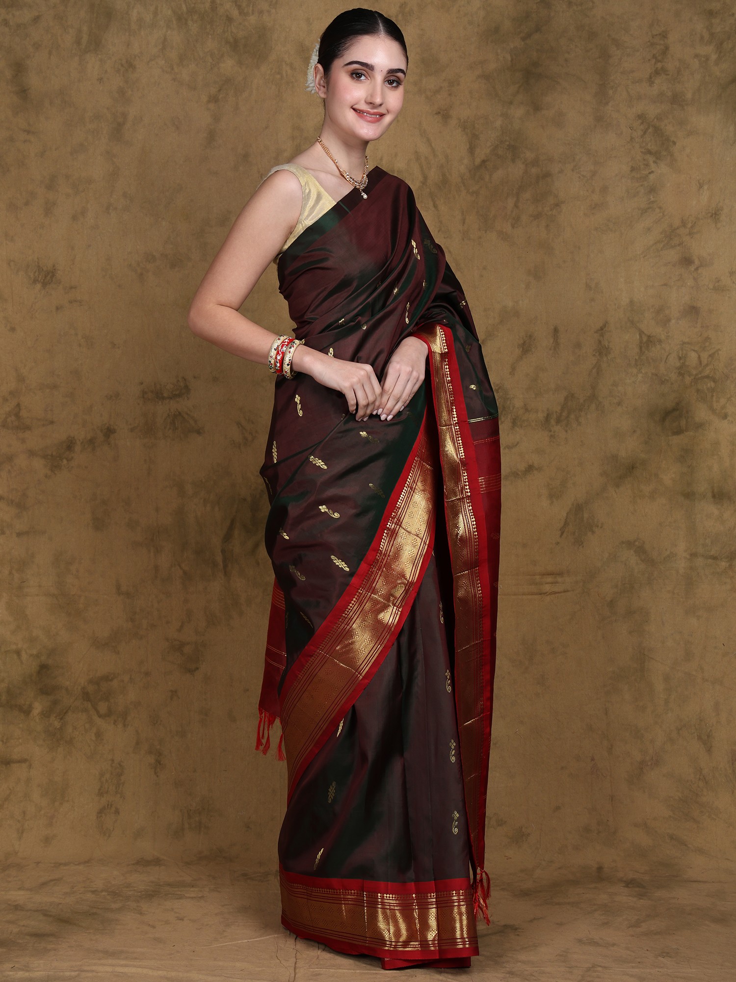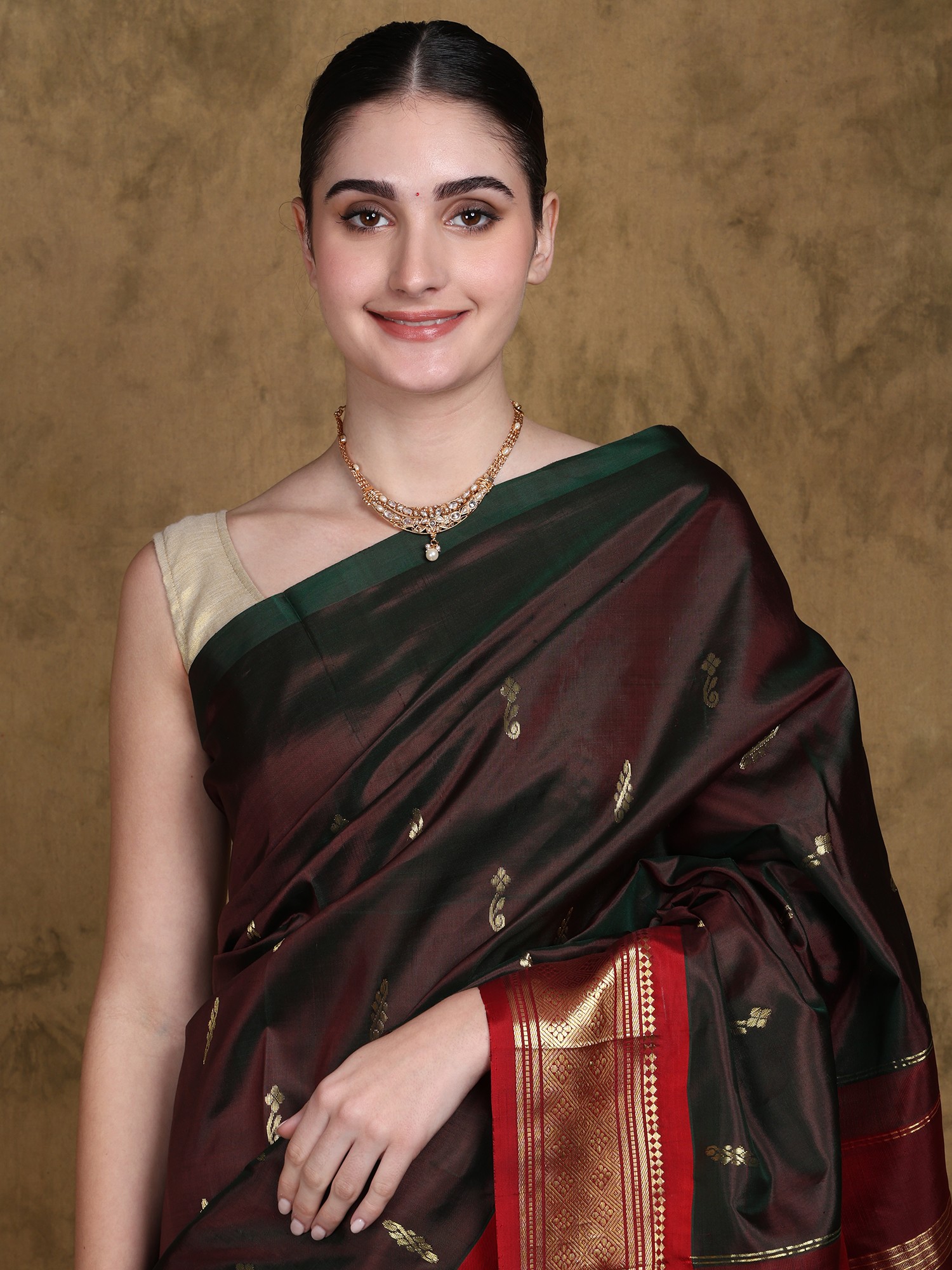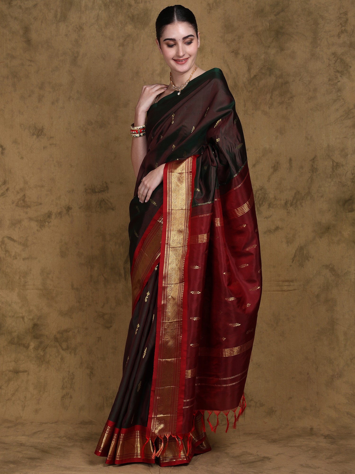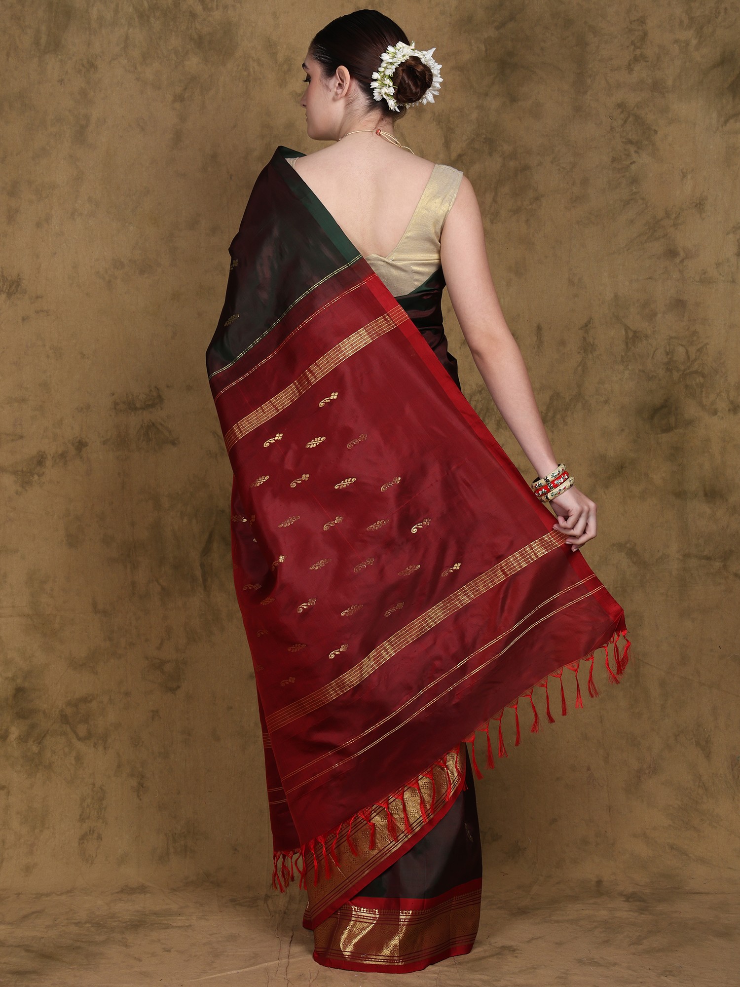 Pure Silk Zari Woven Bootis Saree with and Contrast Pallu from Kumbakonam