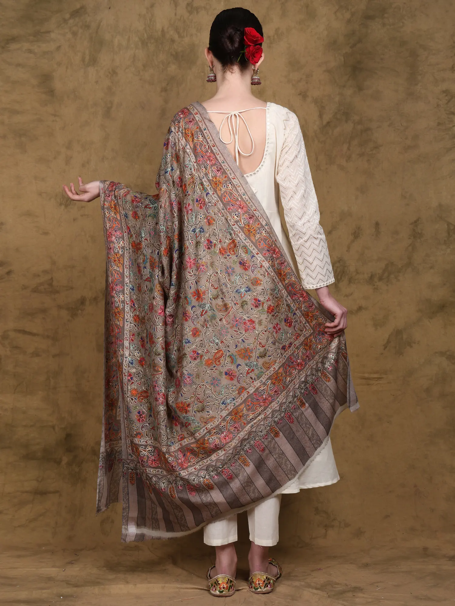 Amritsari Chain Stitch Satin Aari Embroidered Mughal Motif Pure Wool Shawl