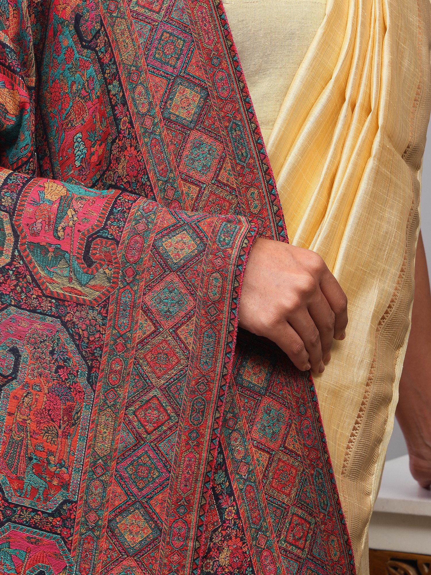 Woolen Jamawar Shawl from Amritsar with Woven Giant Paisleys and Flowers