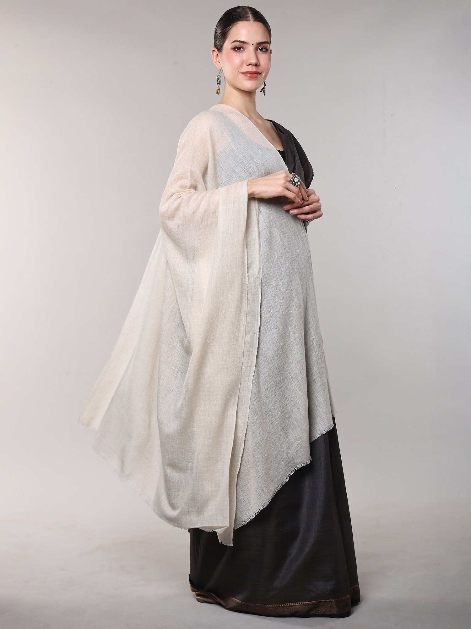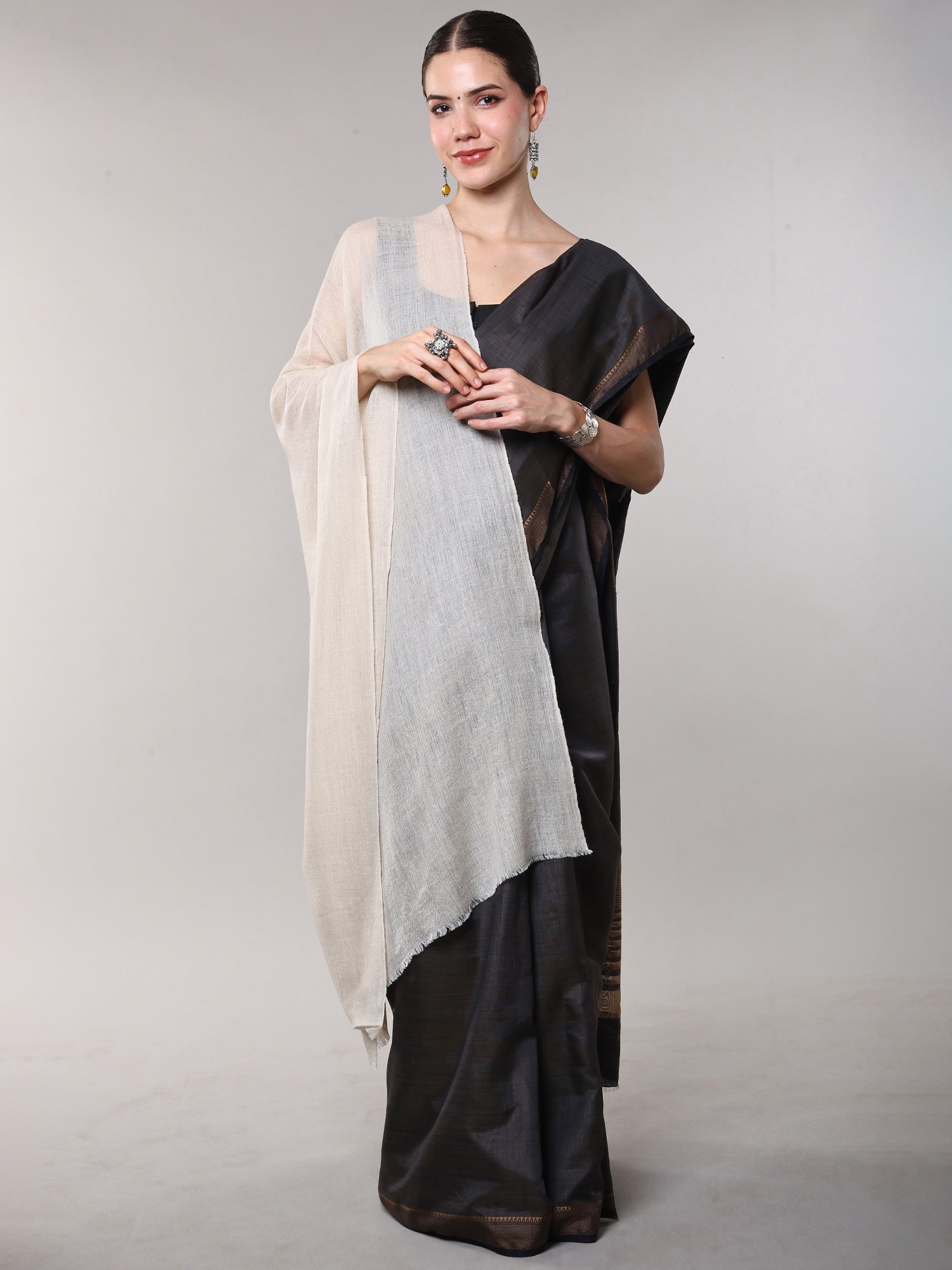 Pure Wool Kashmiri Plain Stole with Diamond Weave and Contrast Border