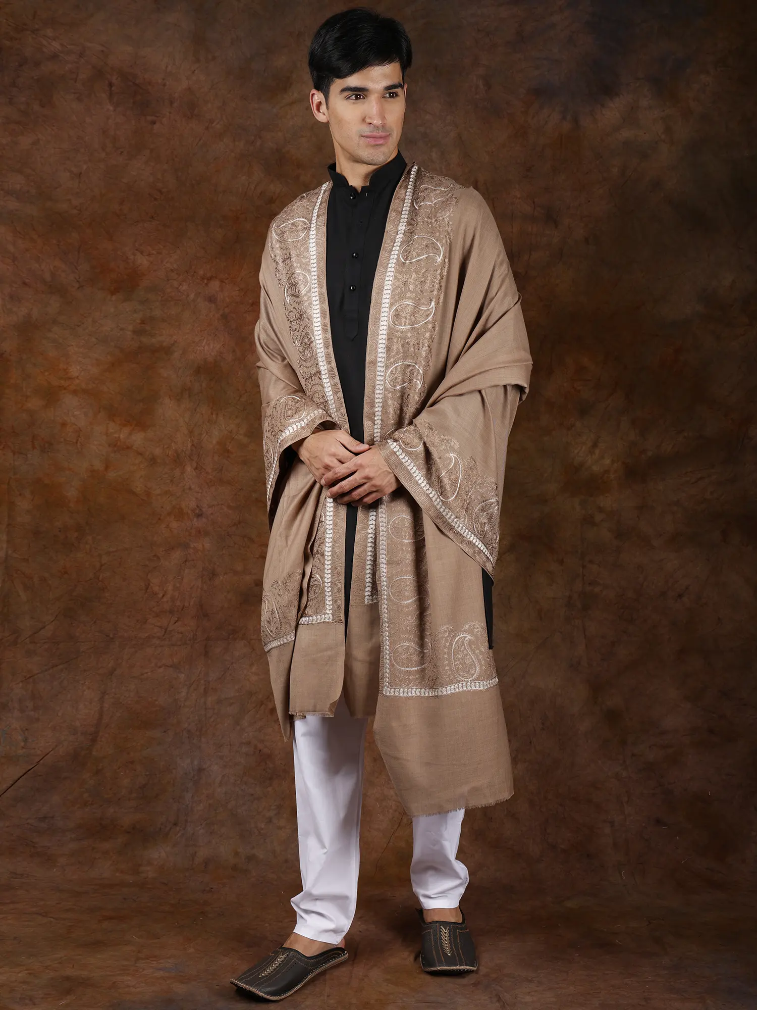 Paisley Aari Embroidery Fine Woolen Shawl from Kashmir