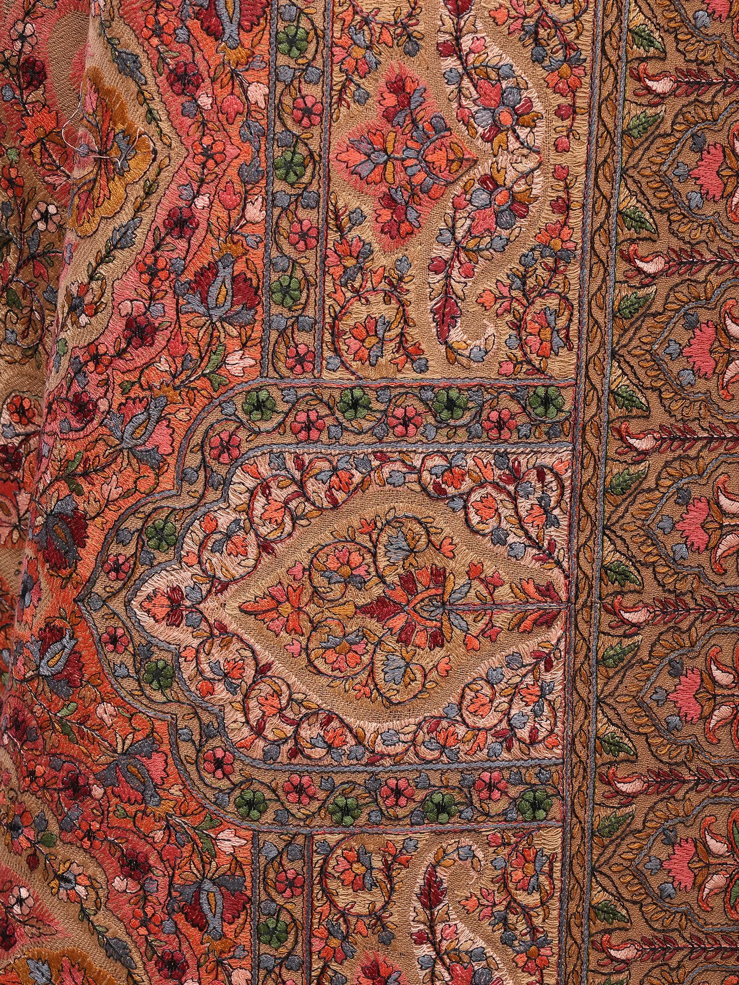 Amritsari Chain Stitch Satin Aari Embroidered Mughal Motif Pure Wool Shawl