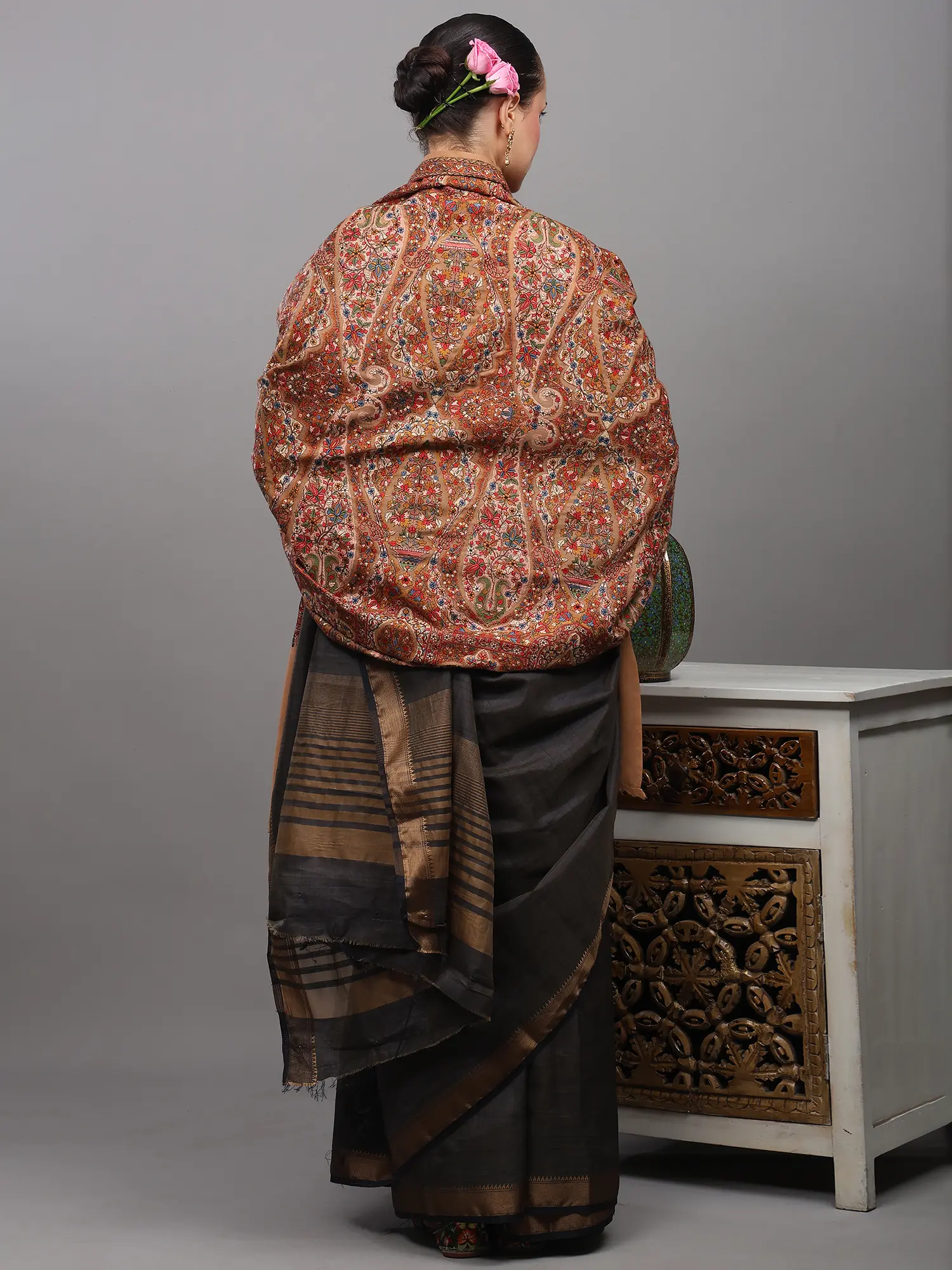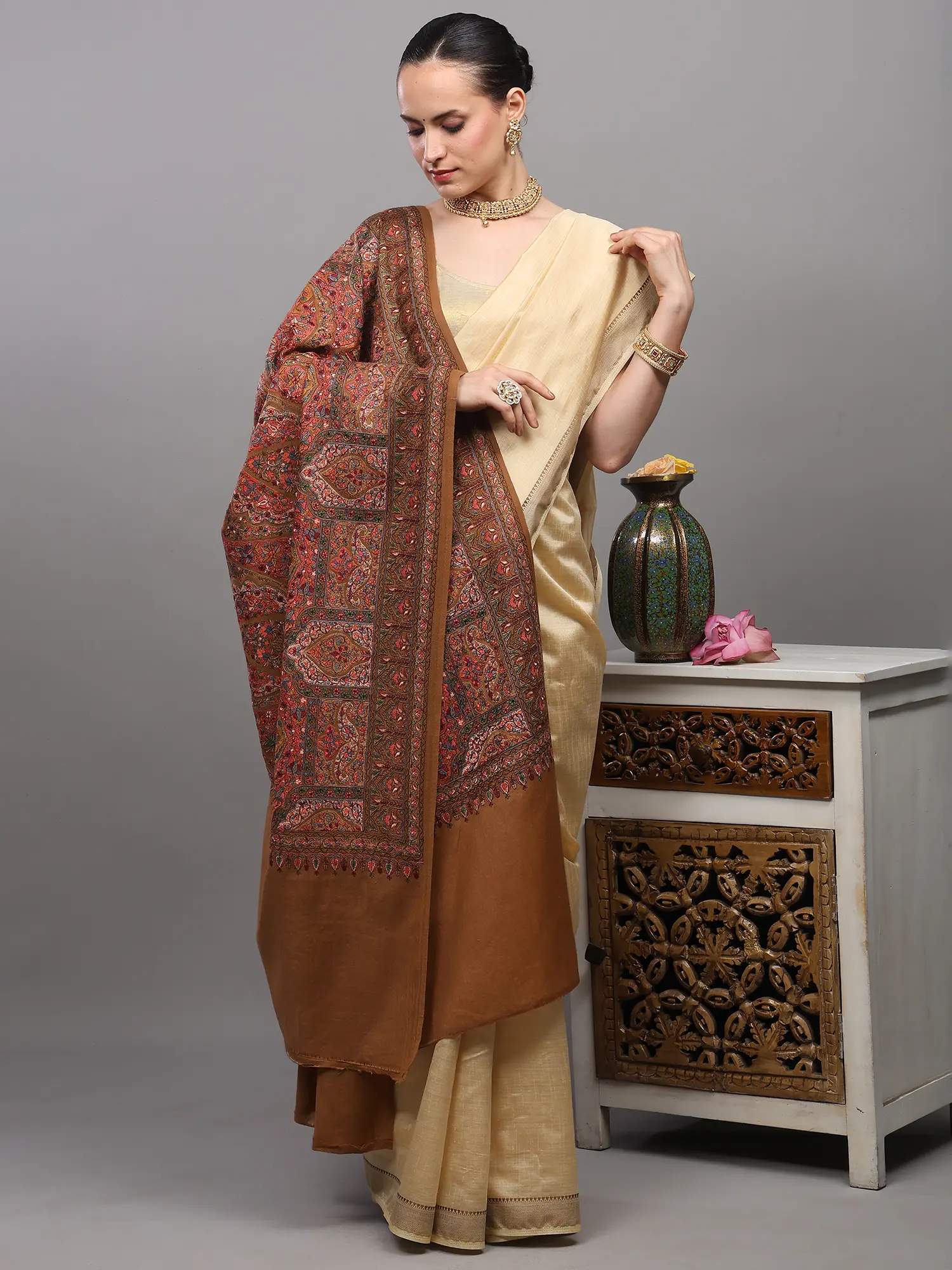 Kani Jamawar Wool Shawl from Amritsar with Flowers Woven in Multicolor Thread