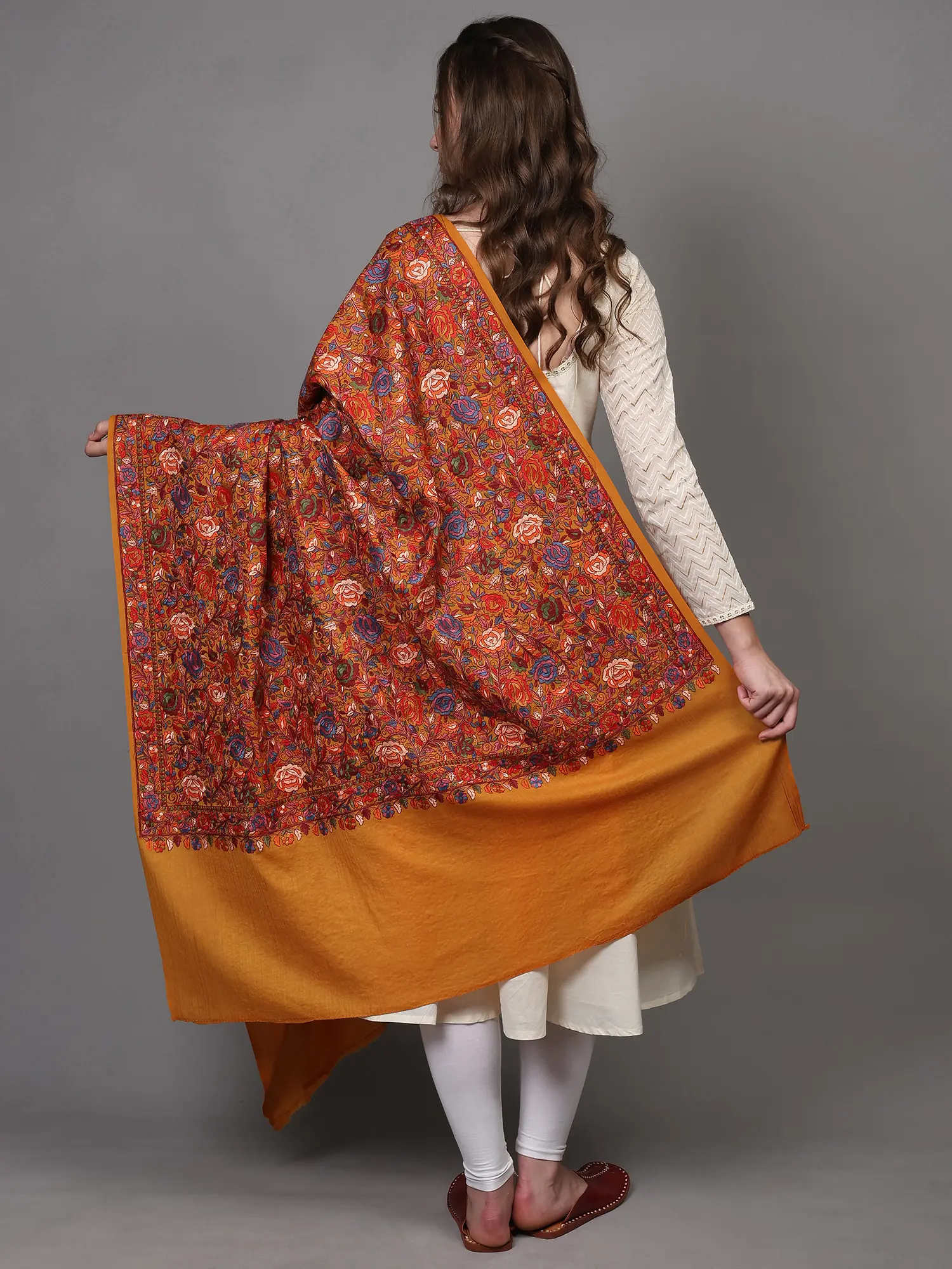 Wrap yourself in the warmth and beauty of this exquisite shawl, a testament to the rich textile heritage of Punjab. Crafted from the finest pure wool, this shawl is more than just an accessory; it's a wearable work of art that tells a story of skilled artisans and timeless traditions. The soft, luxurious wool drapes beautifully, providing both comfort and an elegant silhouette. Perfect for adding a touch of sophistication to any outfit or for snuggling up on a chilly evening, this shawl is a versatile addition to your wardrobe.