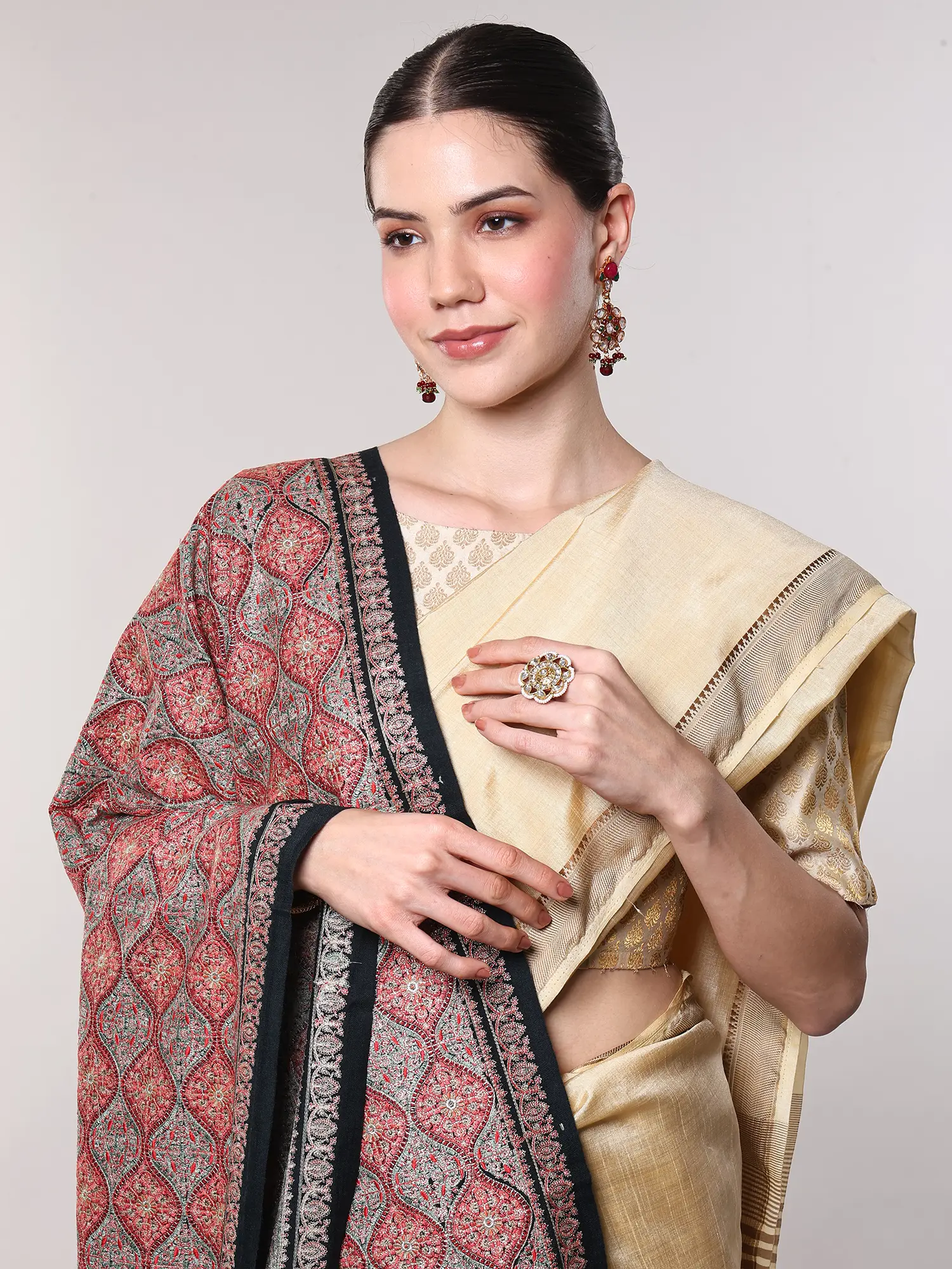 Pure Wool Shawl with Aari Embroidered Paisleys on Border from Punjab