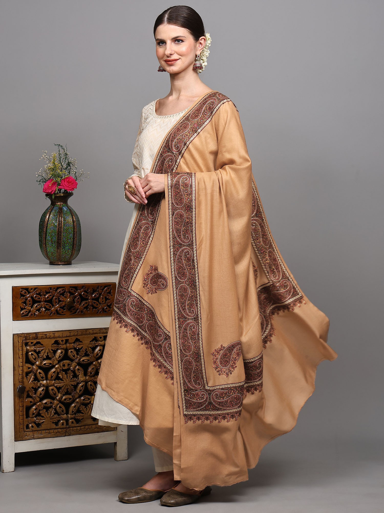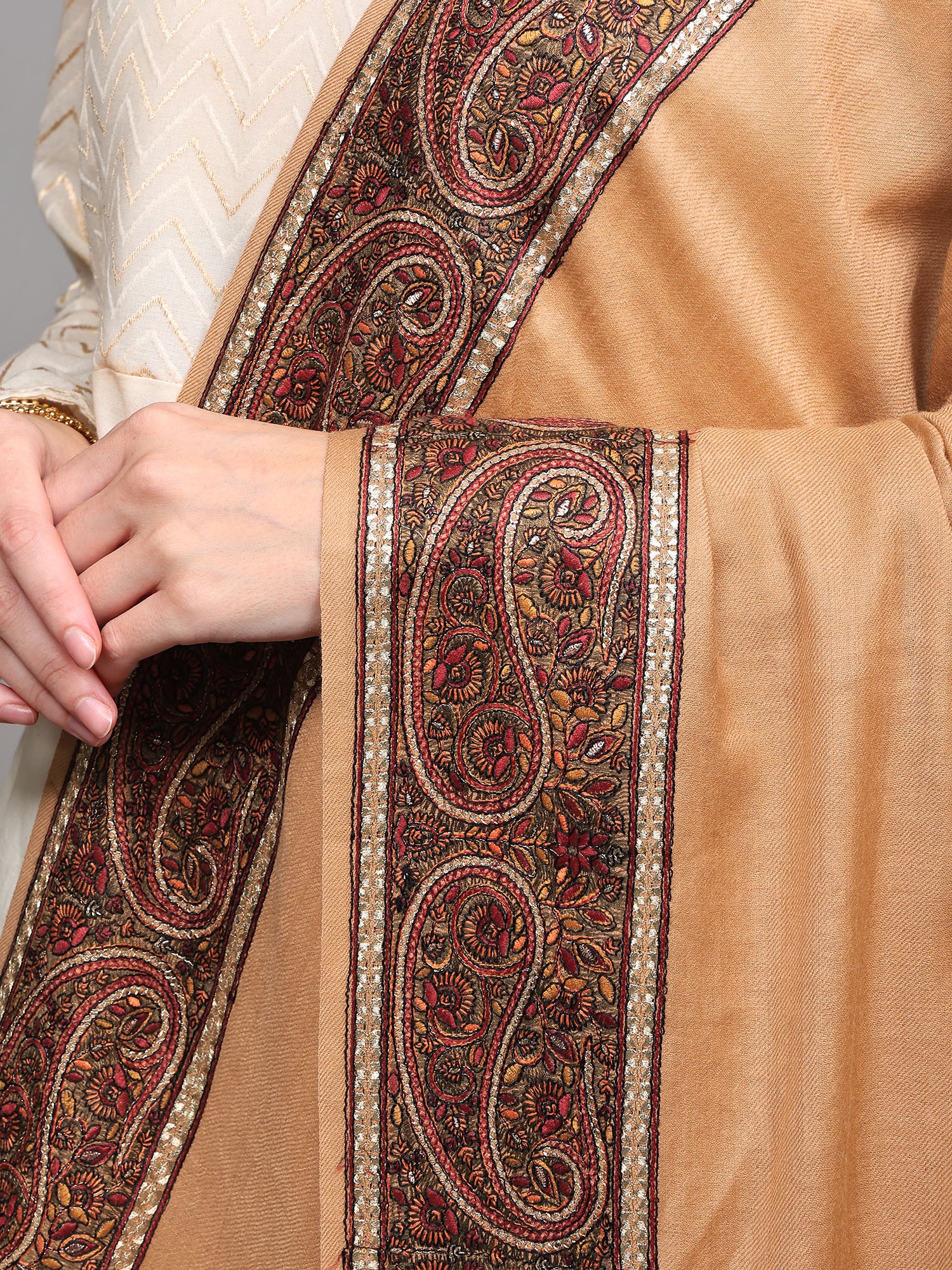 Pure Wool Shawl from Punjab with Multicolor Intricate Embroidered Floral Vines