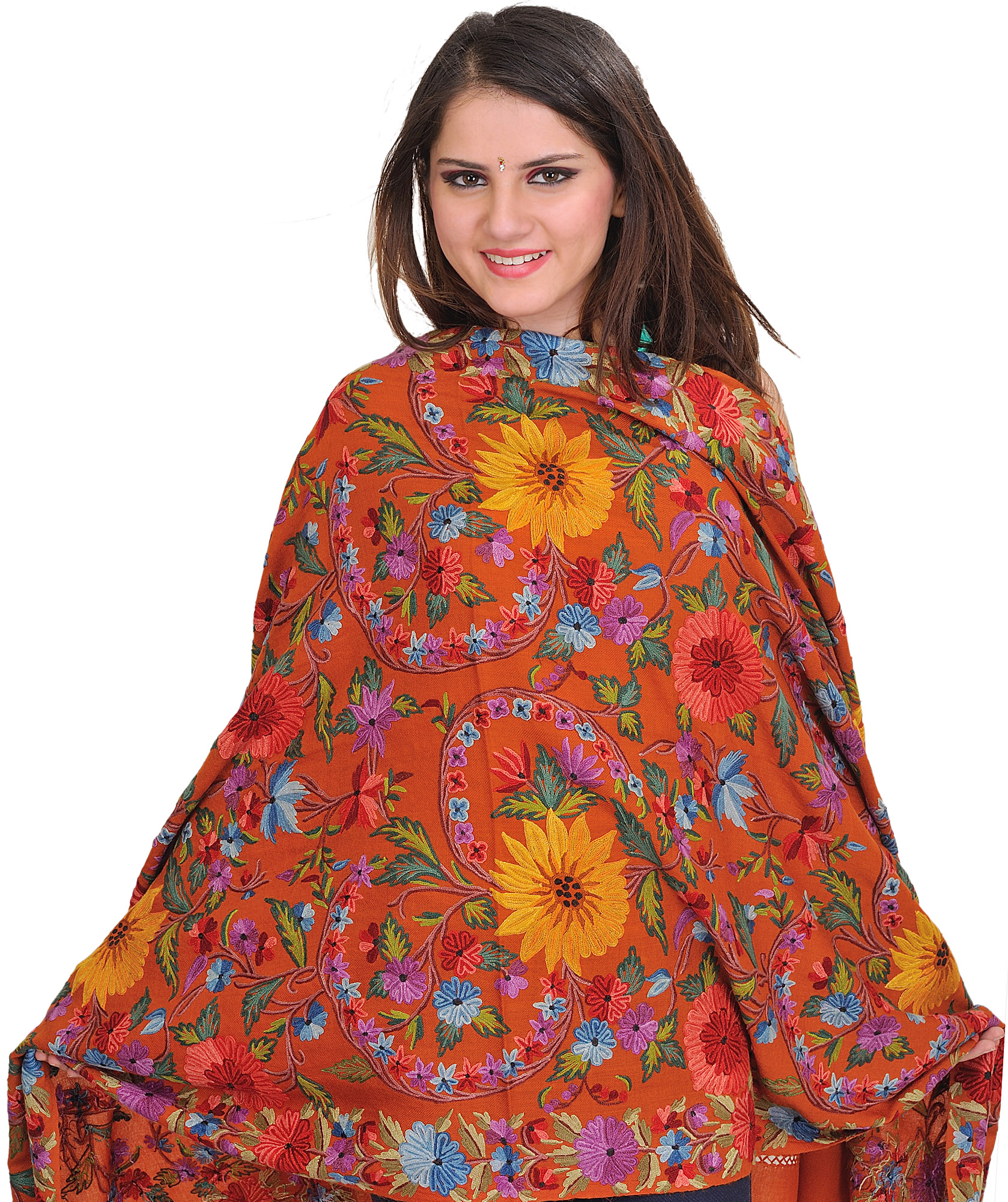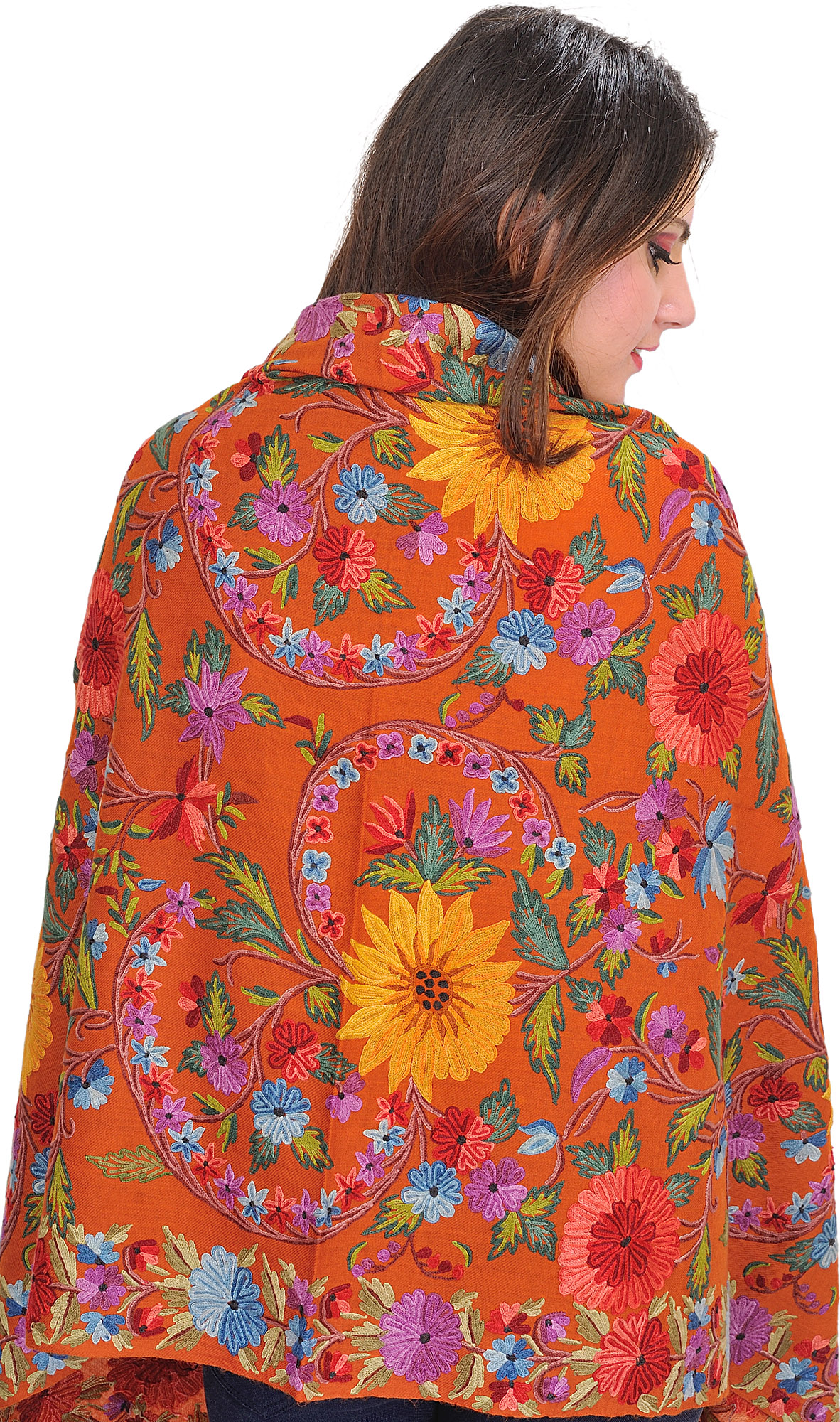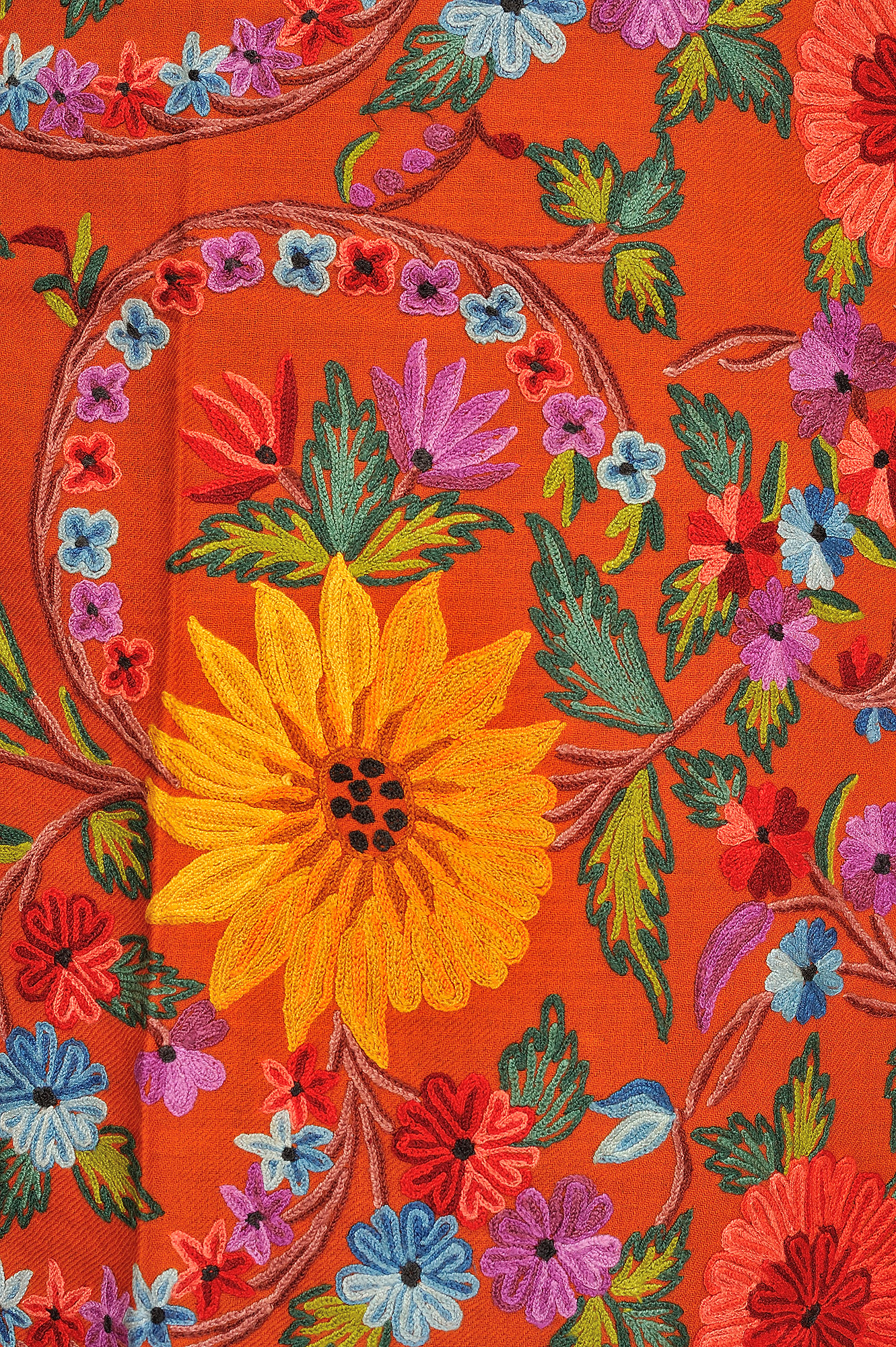 Signal-Brown Stole with Chain Stitch Embroidered Floral Vine in Multicolor from Amritsar