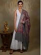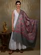 Medieval-Blue Kashmiri Shawl with All-over Floral Aari Embroidered in Multi-Color Thread