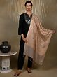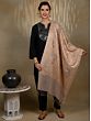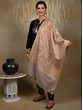 Pure Woolen Monochromatic Stole with Detailed Traditional Big Paisley Aari Threadwork from Kashmir