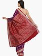 Tawny-Port Pure Cotton Ikat Handloom Saree from Sambhalpur with Woven Fish-Peacocks Wide Border