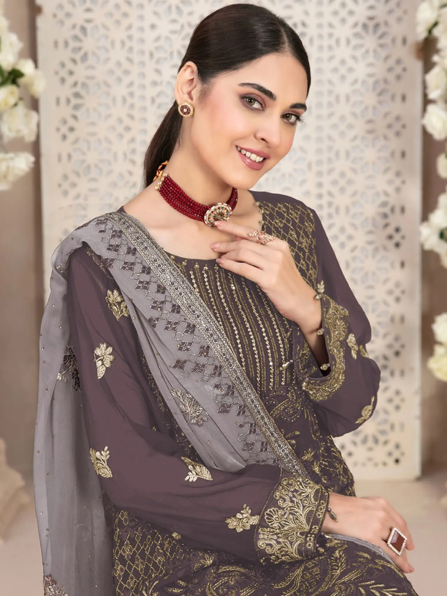 Georgette Sequins Embroidery Kurta Set with Matching Bottom and Dupatta