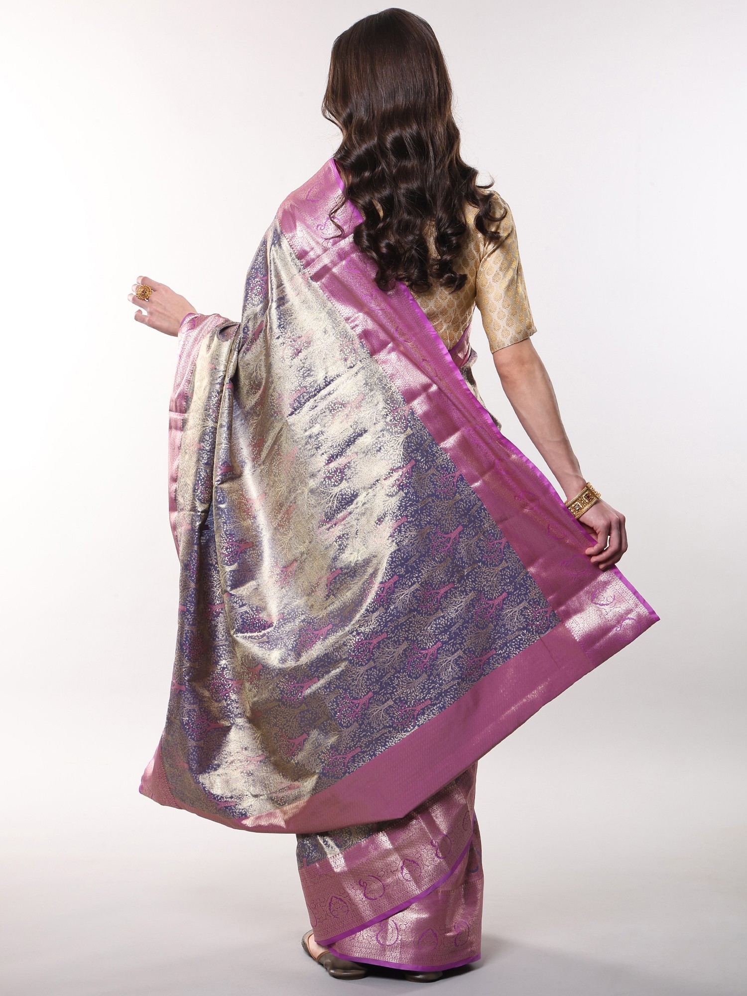 Purple-Haze Iridescent Dhoop Chaanv Saree with Woven Trees All-Ovcer and Contrast Paisleys Border from Bangalore
