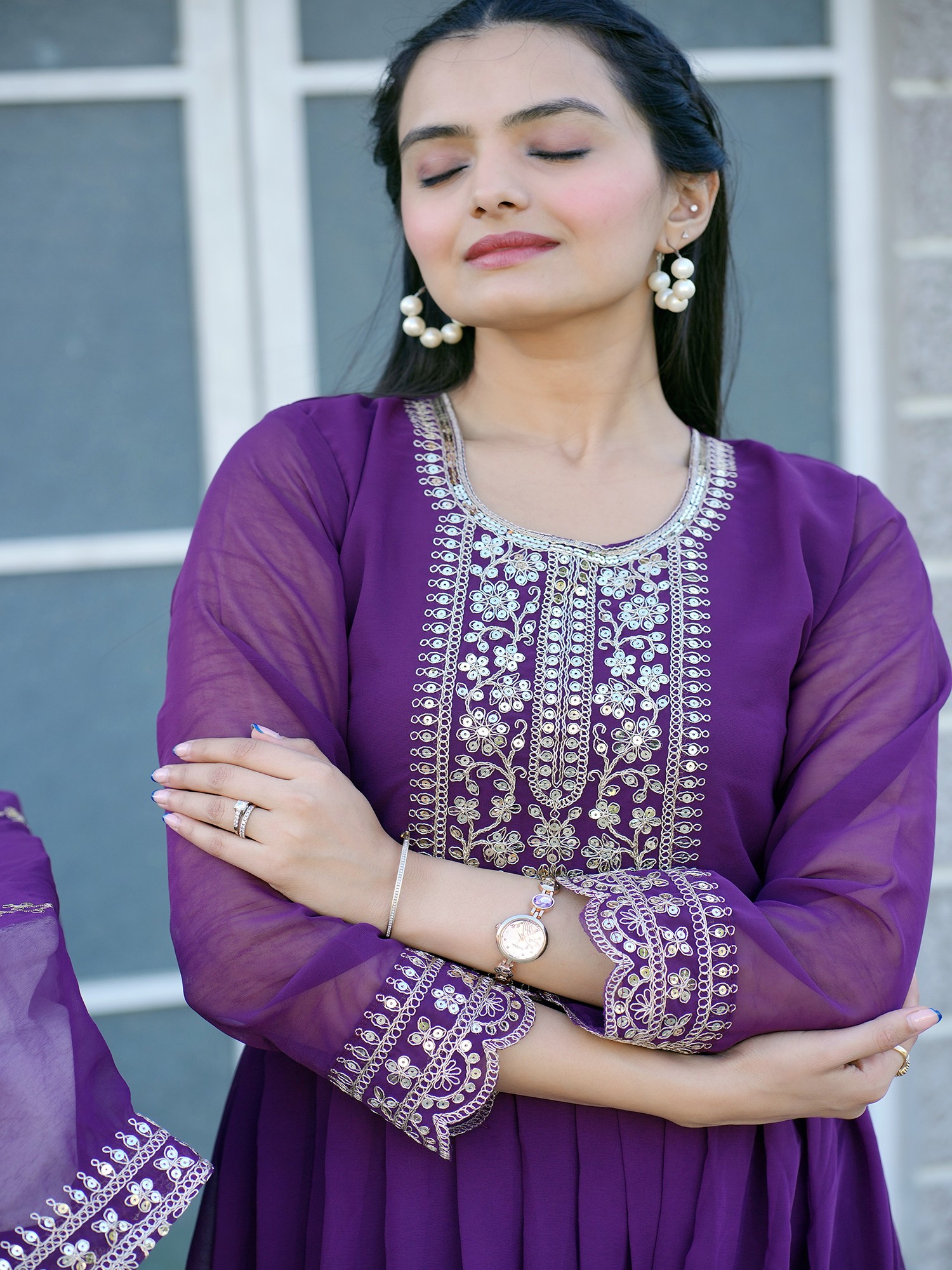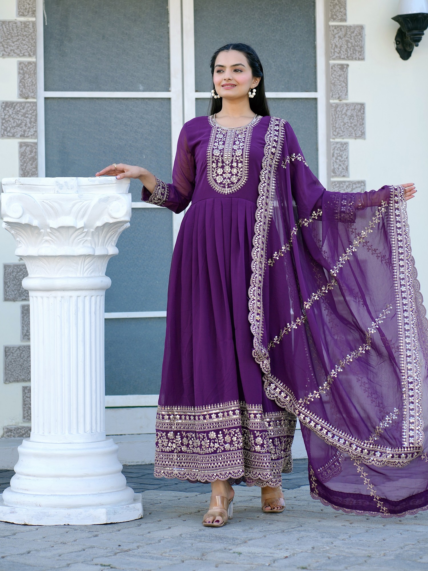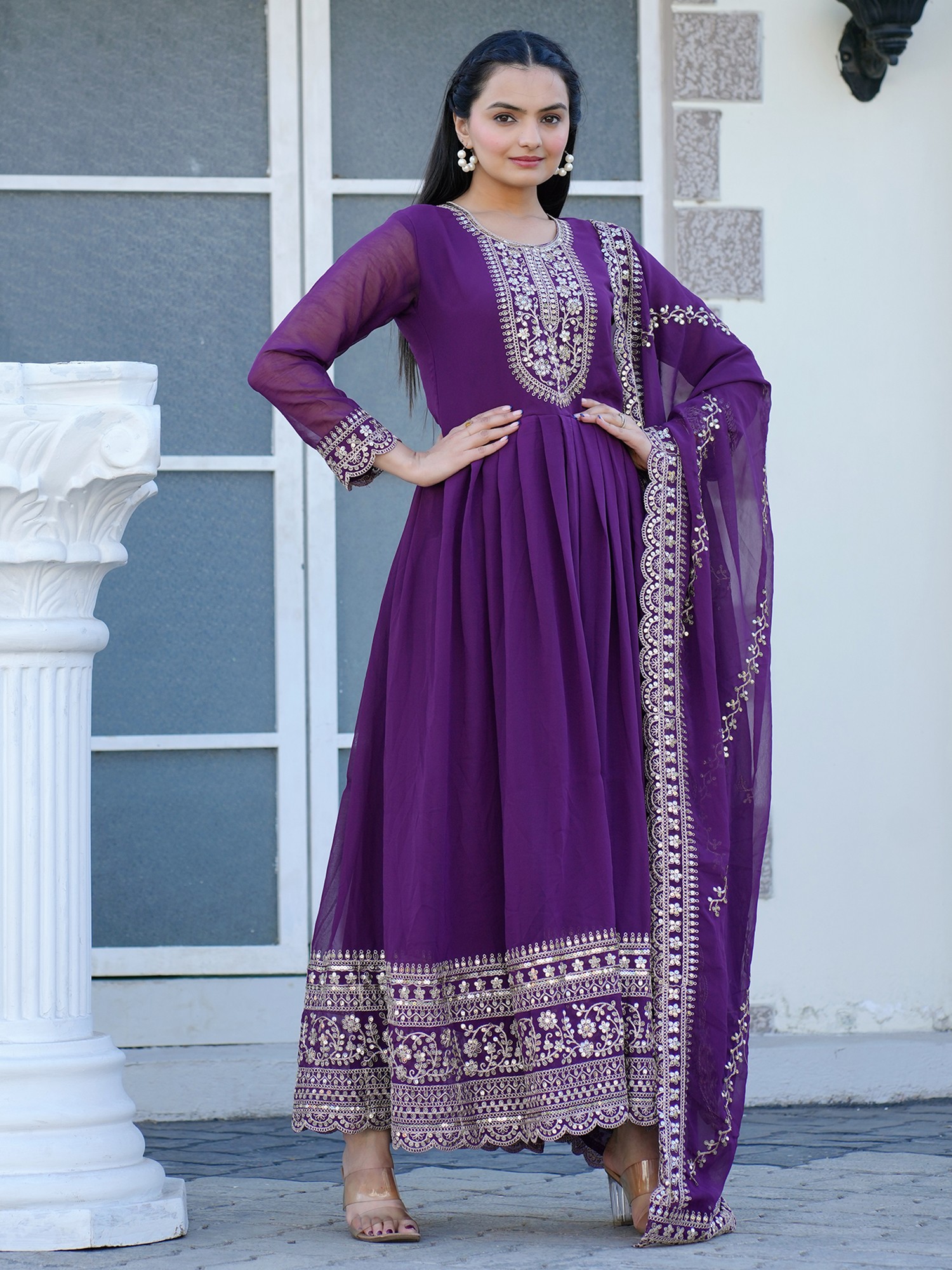 Creme-Brulee Double Layered Anarkali Suit with Zardosi Embroidery in Vibrant Hues