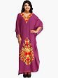 Flamingo-Pink Kashmiri Long Kaftan with Chain Stitch Aari Embroidery