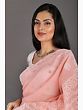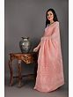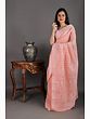 The lighter than air Chikan embroidery is given a befitting space to show its magic, in this beautiful quartz pink cotton saree. Purely ethnic motifs of flowers and leaves are carefully carved on the aanchal of the saree, with blossoming vines covering the border. A gift of the weaving traditions of the city of Nabobs- Lucknow, this Chikan saree will carry you to the ages of Nazakat and Nafasat (delicateness).