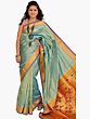 Parrot Green Silk Paithni Sari with Sheen Golden and Violet Border and Golden Zari Mor Big Butta, Kairi Butta and Mor Kunda Motifs