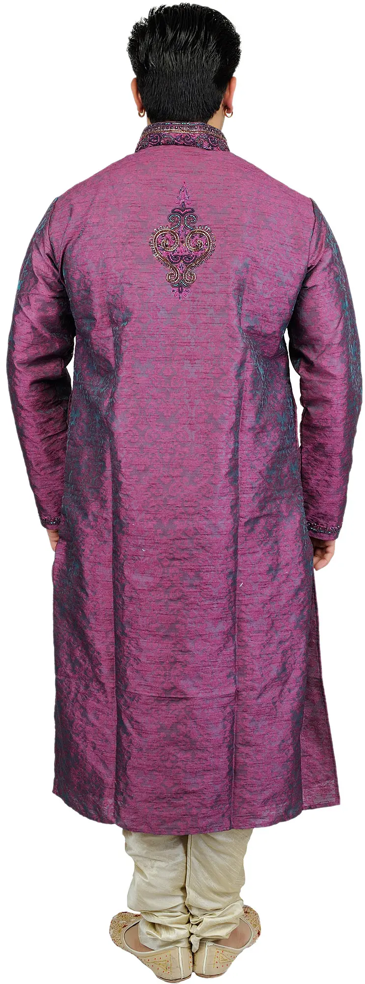 Wedding Kurta Pajama Set with Embroidered Collar and Jacquard Woven Paan Leaves